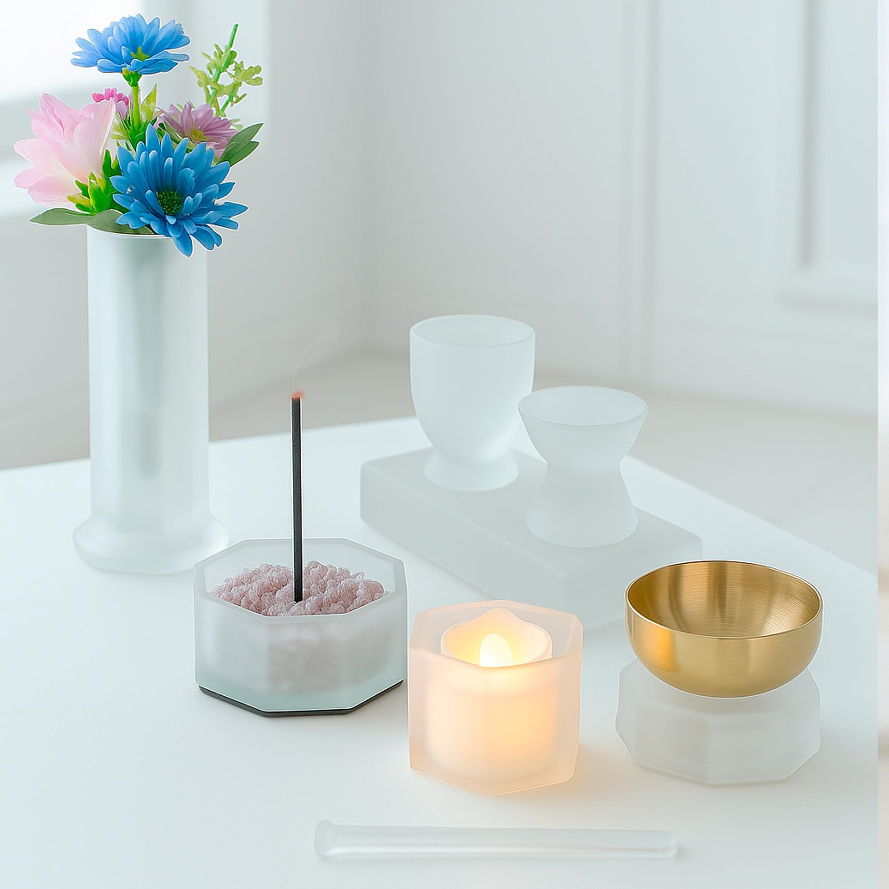 【新着】【お仏壇.TetoTe手と手】仏具10点セットタペストリーガラス「おとは」 仏具セット ご飯入れ水入れ ご飯お水置台 香炉 花立ローソク立て リンー 色セット LEDキャンドル 香炉砂 モダン仏壇 ミニ仏壇 法事 お盆 | GIGATERA