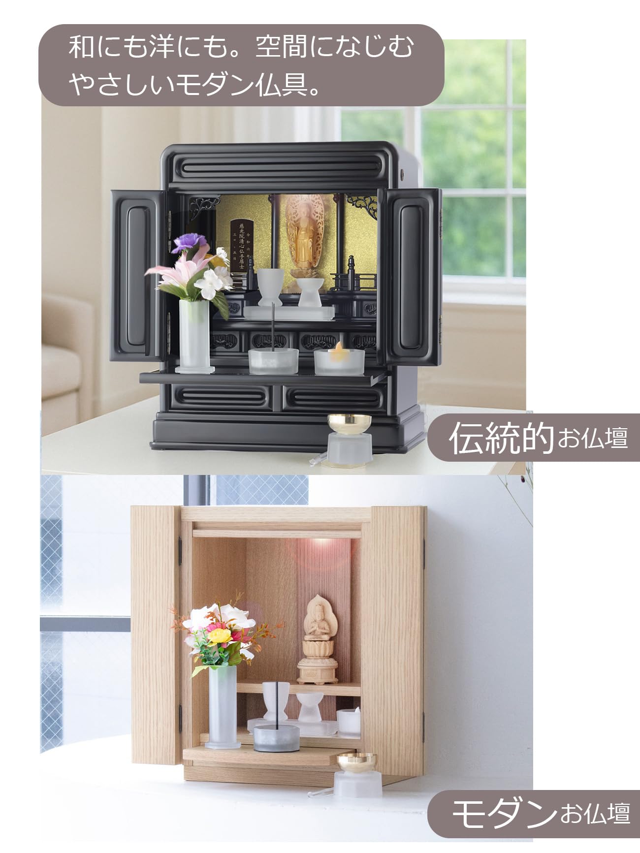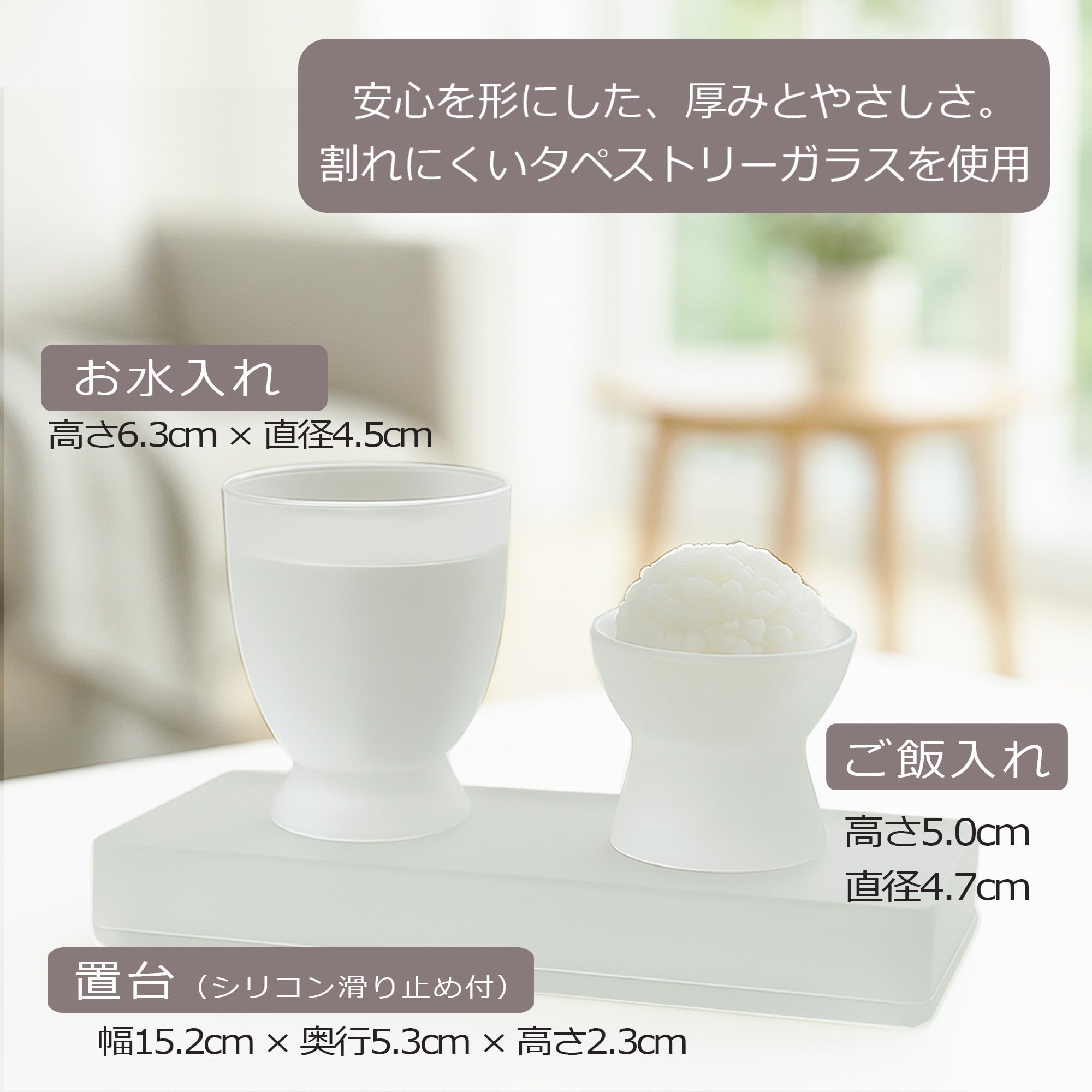 「おとは」は手と手 オリジナルのタペストリーガラス製の仏具セットです。シンプルなデザインと耐久性のあるフロストガラス素材が調和したオリジナル商品です。無駄のないシンプルなデザインは、あらゆる仏壇と調和する優しいデザインです。