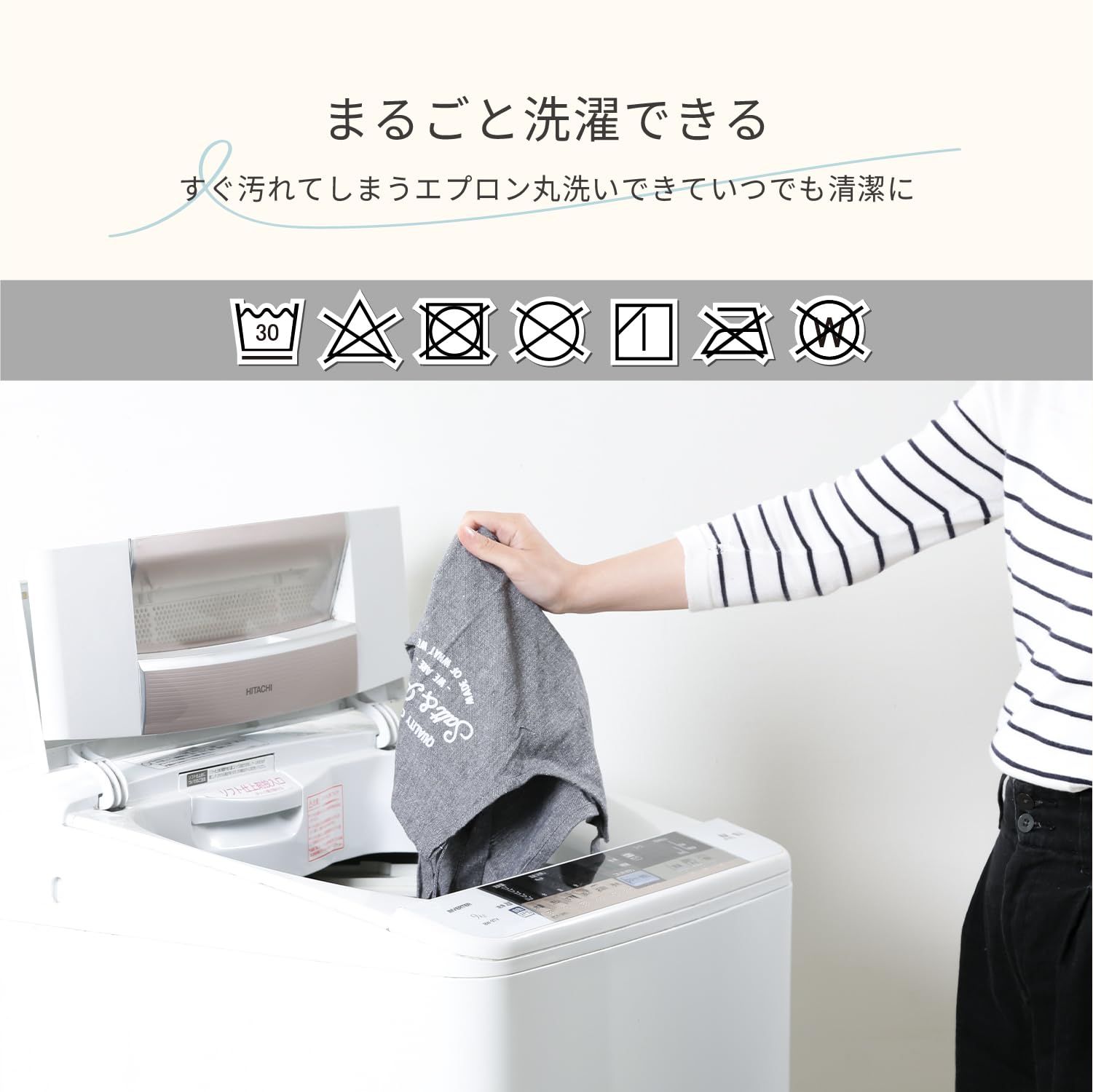 落ち着いた色味と英字のロゴがおしゃれなカフェ風エプロン。