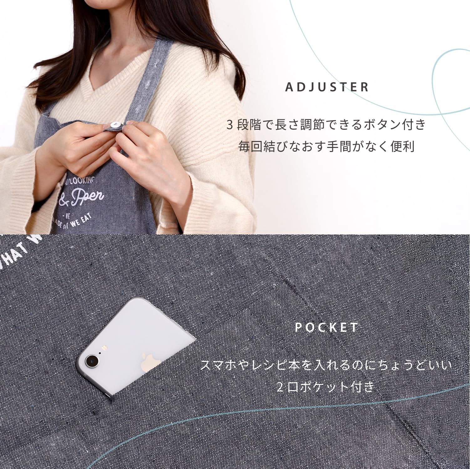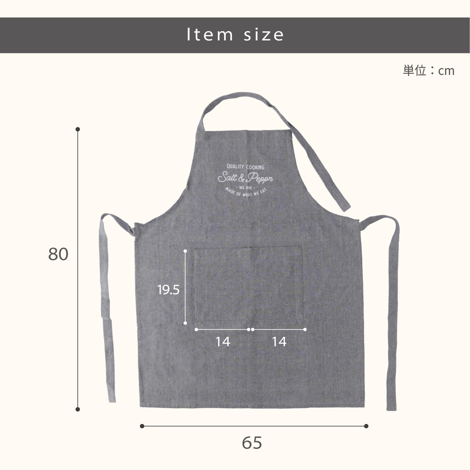 不二貿易 エプロン 幅65×厚み0.2×縦80㎝ チャコール 丸洗い可能 3段階調節 ポケット付き カフェ風 Salt&Pepper 71950