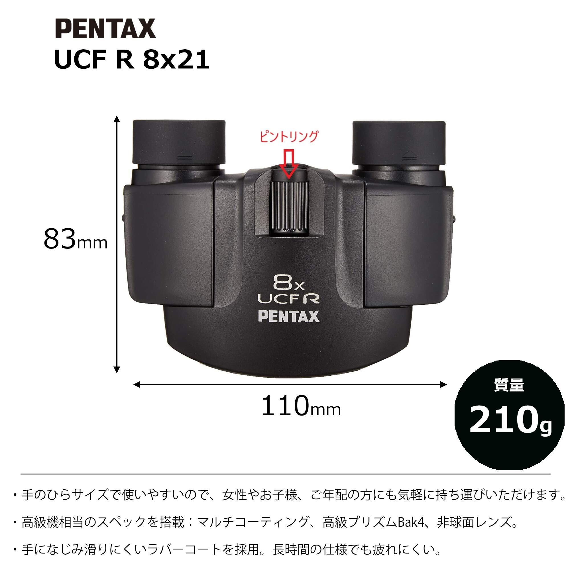 ペンタックス PENTAX 双眼鏡 UCF R 8x21 【野鳥観察】【ライブ、スポーツ観戦】【小型軽量210g】【倍率8倍】 【高級プリズム Bak4搭載】【メガネの方も見やすい・スライド式接眼目当て】【1938年からはじまるペンタックス双眼鏡の歴史】1年 62209