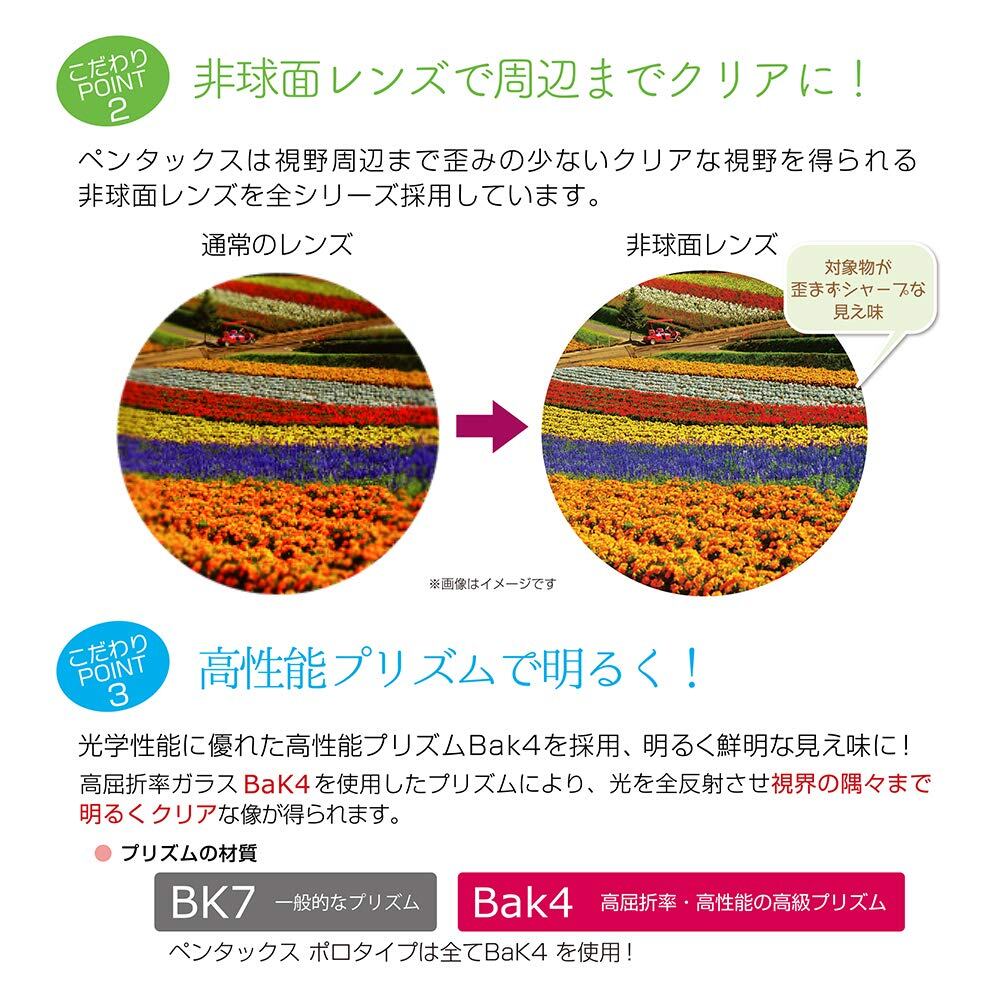 レンズに施したマルチコートと高屈折率ガラスBaK4を使用したプリズムにより、光の透過率と反射率を向上しており、明るい視野が得られる。また、非球面レンズを採用し、視野の周辺部まで歪みの少ないクリアな像を実現している。