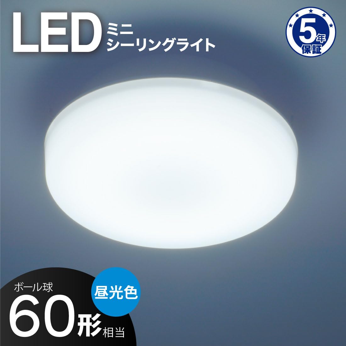 【 特 長 】 ◆トイレ・脱衣所・内玄関・階段・クローゼットなどに ◆ボール球60形相当 ◆全光束840ルーメン ◆取り付け簡単 ◆点灯色は昼光色 ◆LED5年対象商品