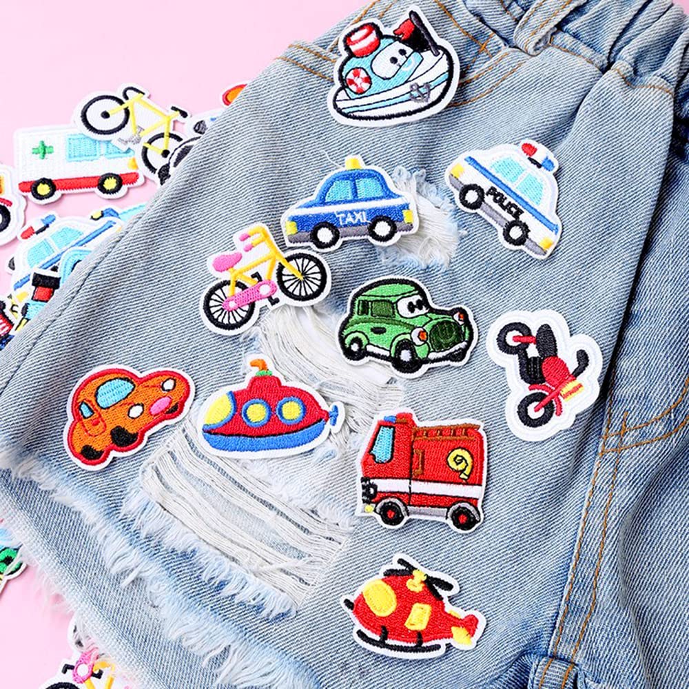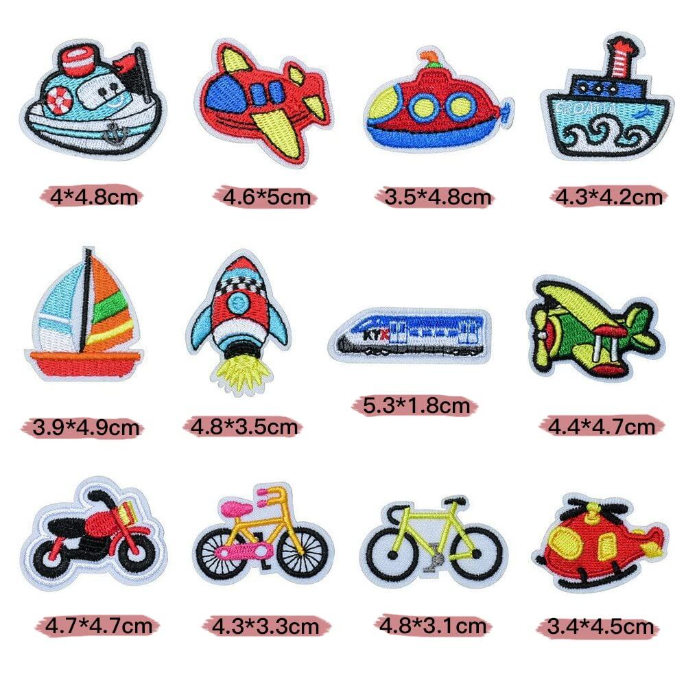 【特価】 乗り物 ワッペン 24枚セット 刺しゅうワッペン 車/船/ロヶット/バイク/自転車/飛行機 アップリケ パッチ アイロン接着 補修 DIY 男の子 子供 幼稚園 保育園 お祝い ギフト | GIGATERA