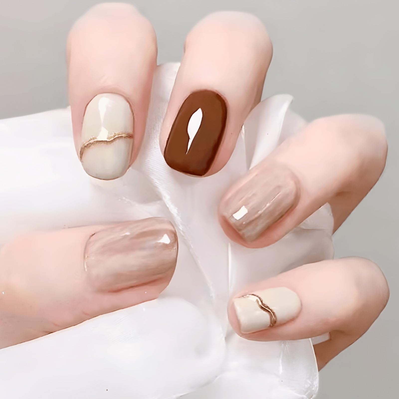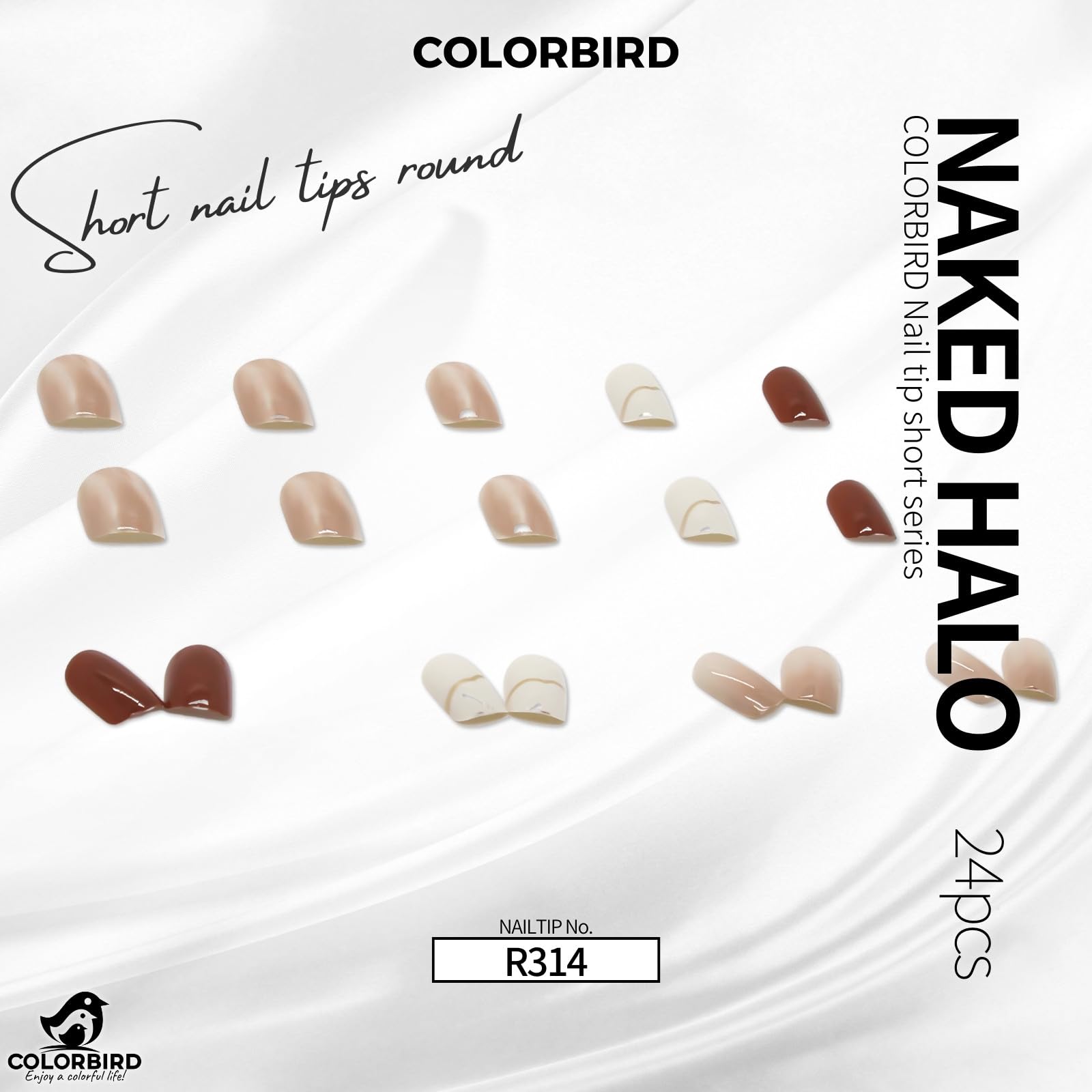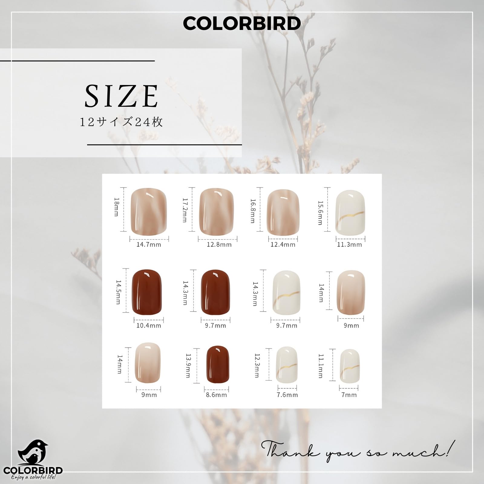 COLORBIRD ネイルチップ ショート 24枚 茶 白 ネイル 付け爪 チップ 短め 可愛い スクエアオフ (R314)