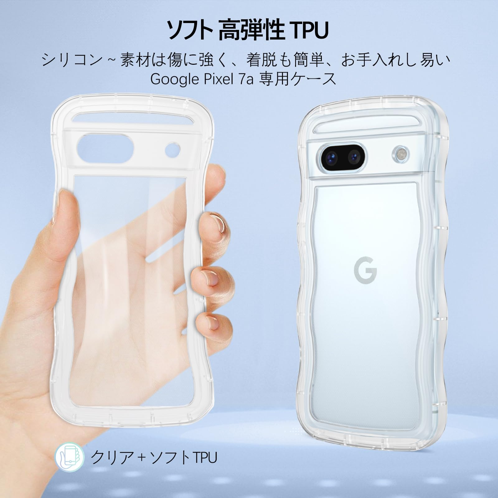?【ウェーブ湾曲縁&TPU肌触り】湾曲したエッジにより握りやすくなっています。Pixel 7A透明ケースは滑らかな液体シリコンゴムと柔らかいTPU製で、耐傷性、耐指紋性、耐衝撃性に優れ、取り外しも簡単,お手入れし易い。
