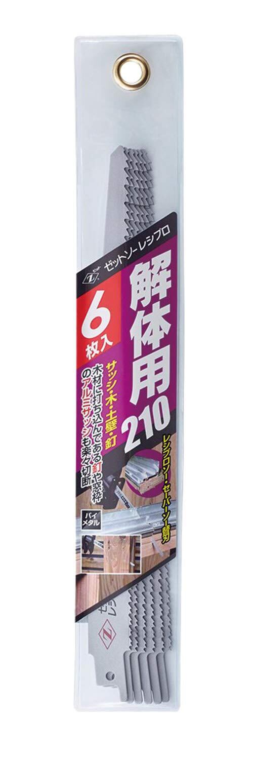 ゼットソー レシプロ解体用210 6枚入 リフォームなどの解体作業 刃先にハイス鋼を採用 木材も土壁もアルミサッシも切断 刃渡り210㎜ 20121