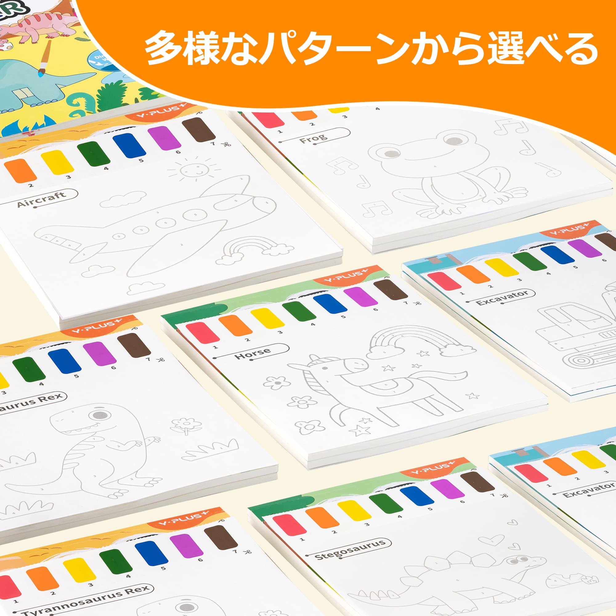 製品の詳細: 各パターンからの特別に設計された数字が、塗り合わせを案内し、子供たちが無理なく塗り絵を完成させる手助けをします。また、塗り絵の各ページはカットラインで簡単にはがすことができます。