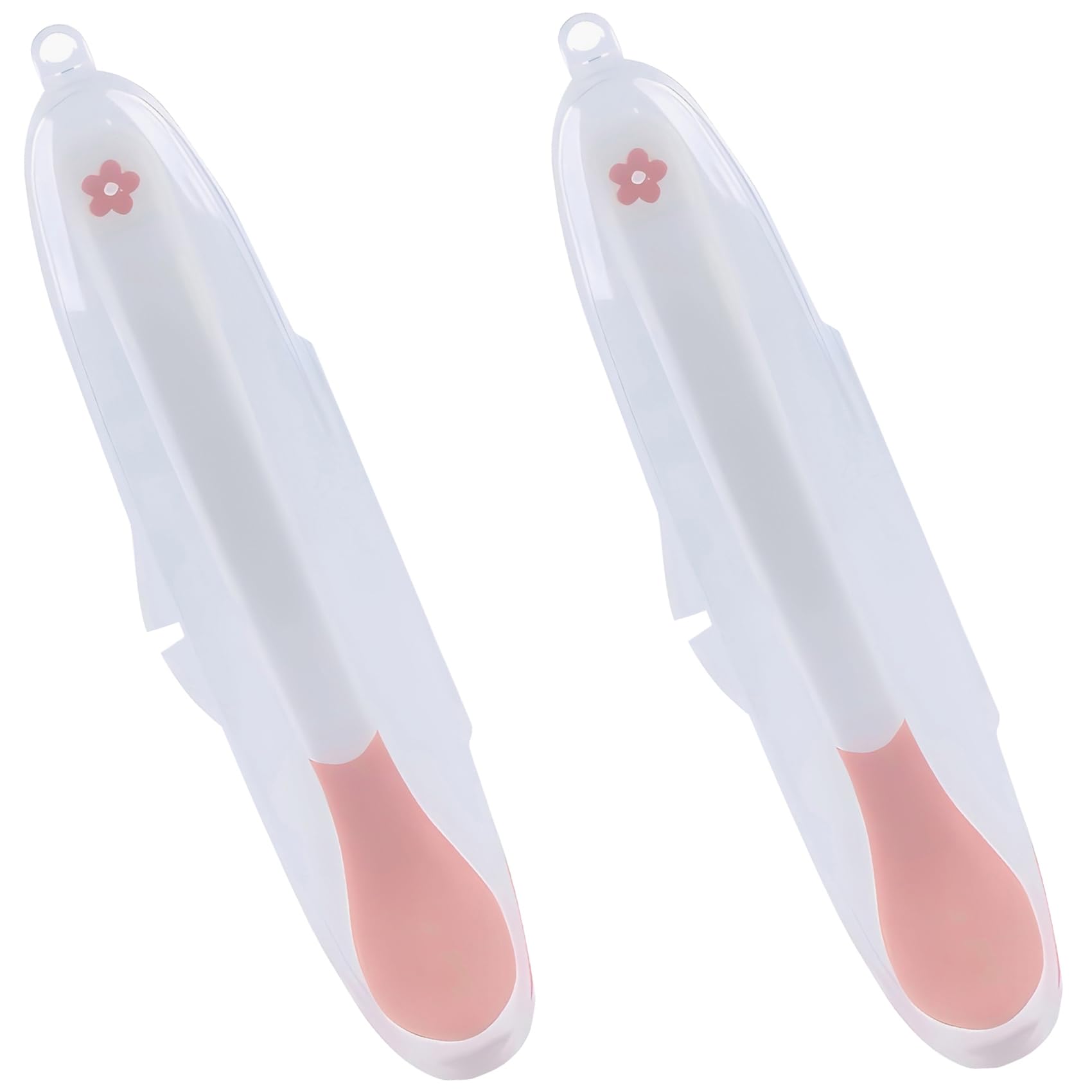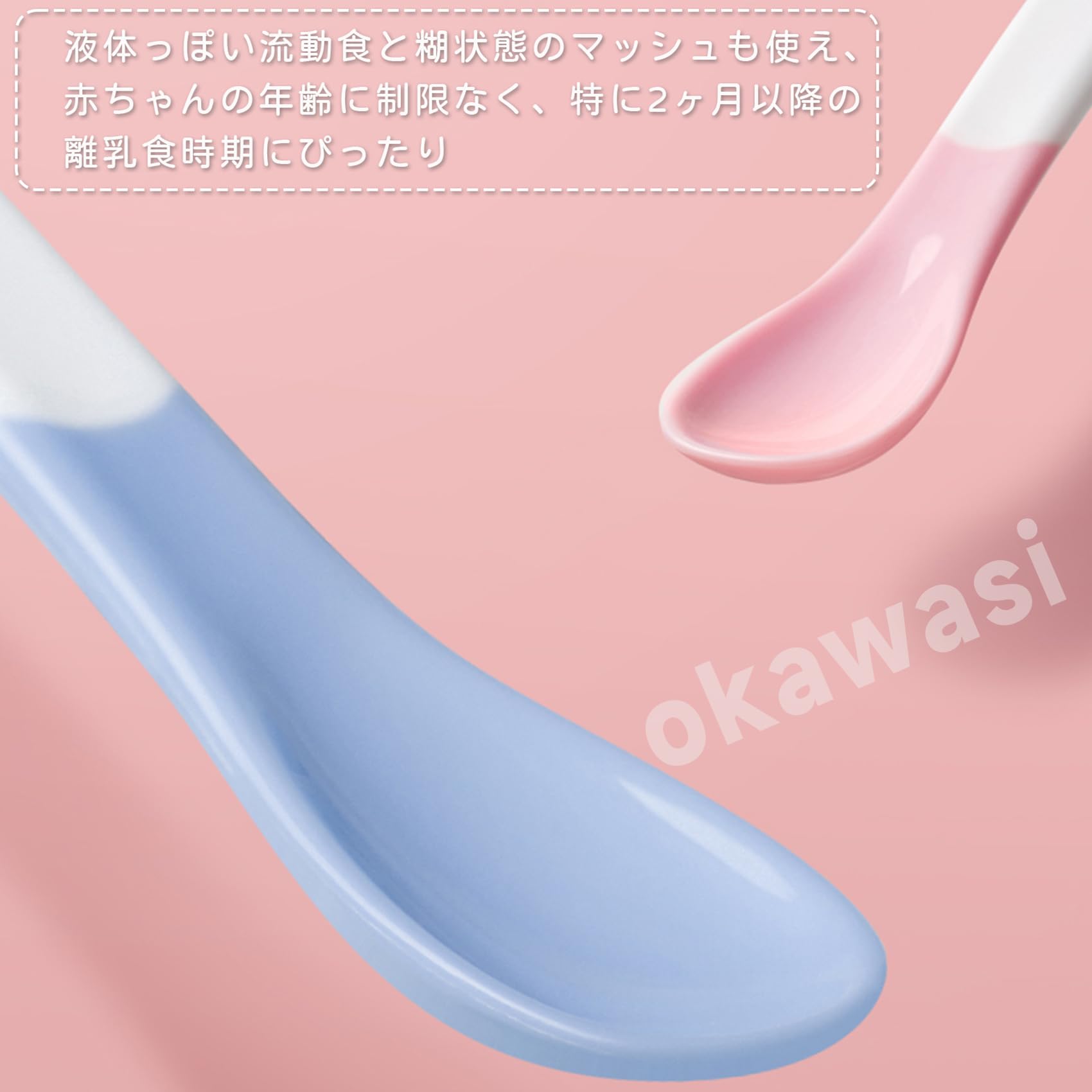 離乳食スプーン 2本セット 温度で色が変わる 温感スプーン赤ちゃんの火傷防止(ピンク)