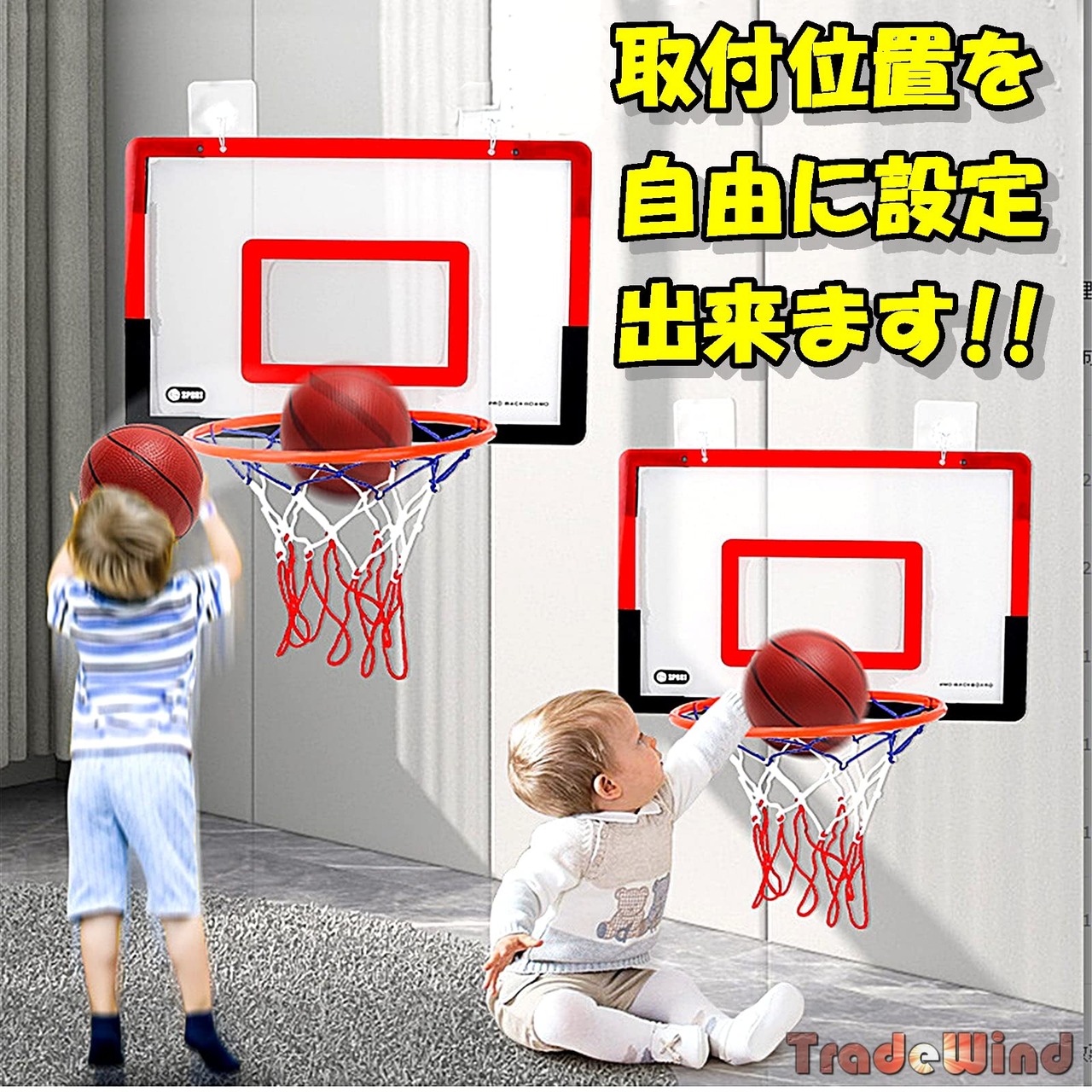 【セール】[TradeWind] バスケットゴール バスケットリング ネット バスケ ボード 壁掛け シュート練習 ボール エアポンプセット ミニサイズ(赤x黒40cm)