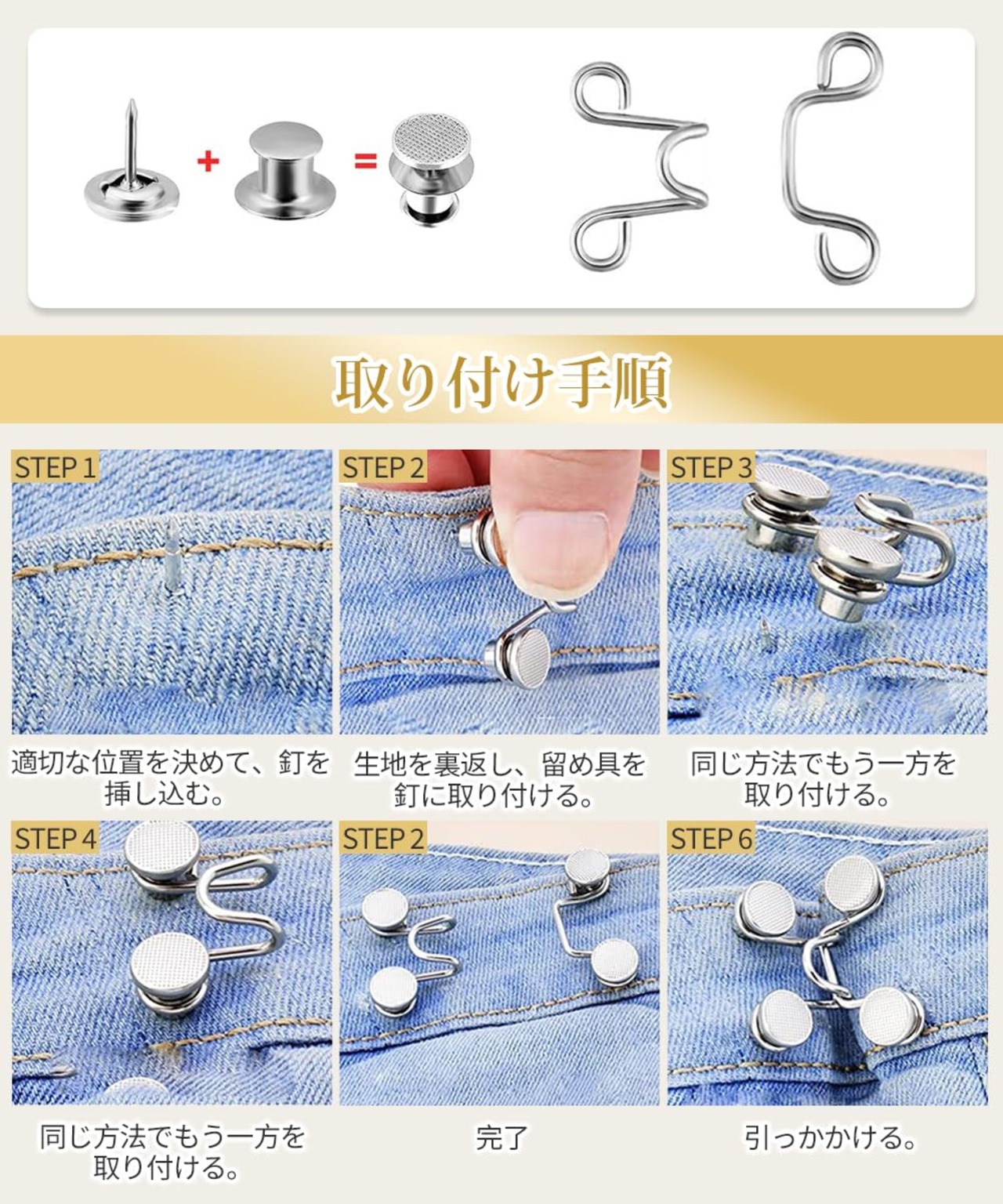 ?【パッケージ内容】ジーンズボタン27mm3個セット。ウエストバックルのセットは、2つのフックと4つのボタンで構成されています。