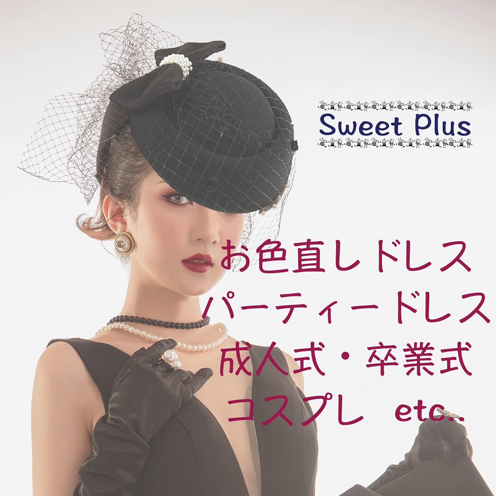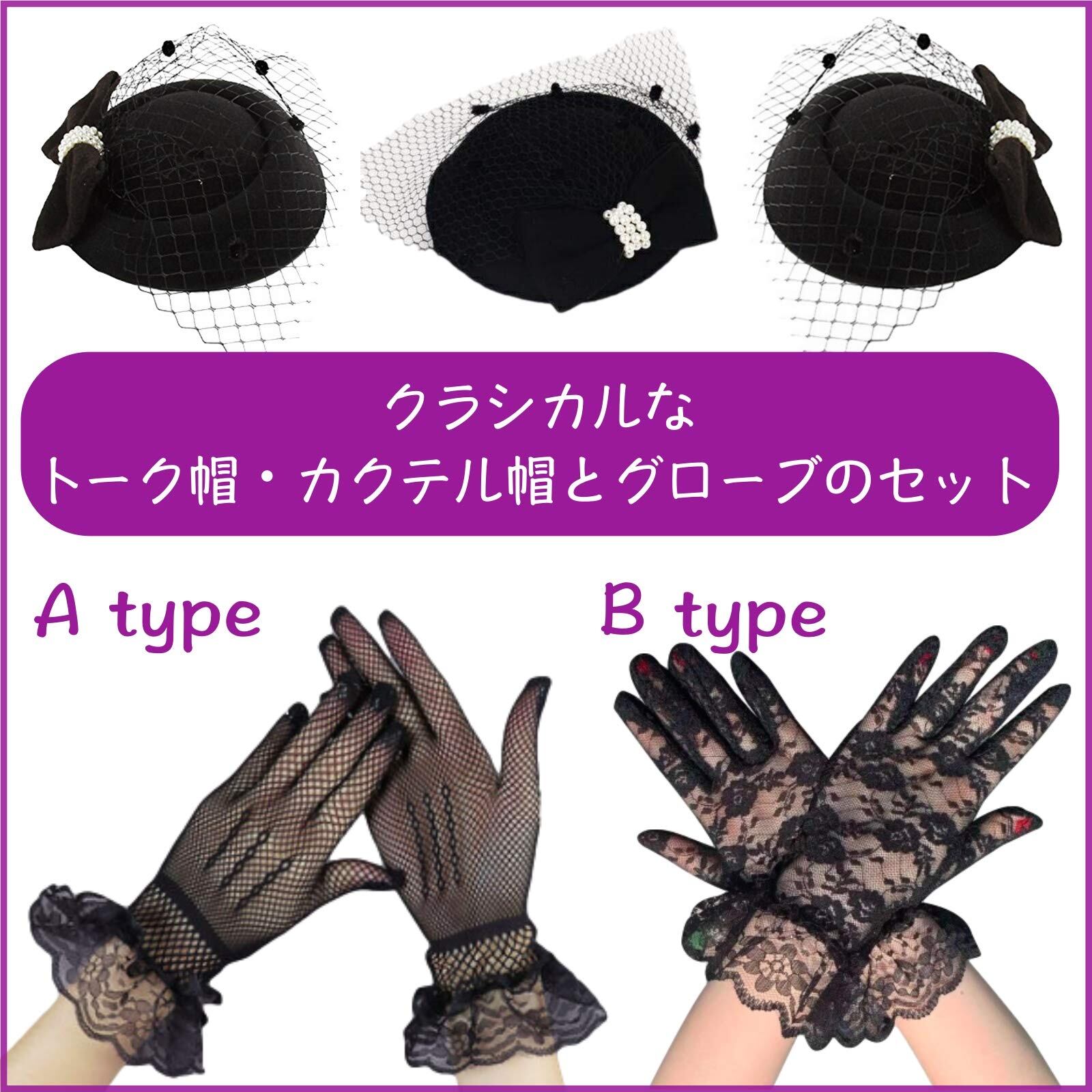 [Sweet Plus] トーク帽 カクテルハット ヘッドドレス パール リボン レース付き パーティー 結婚式 アクセサリー 手袋 セット