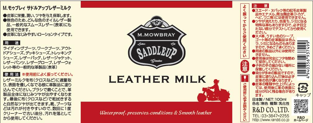 【在庫処分】[M.モゥブレィ] レザーミルク 100ml 革の保湿 ツヤ出し 革ジャン ブーツ 革手袋 レザージャケット 革の乾燥を防ぐ ひび割れ防止 グッドエイジング 経年変化 | GIGATERA