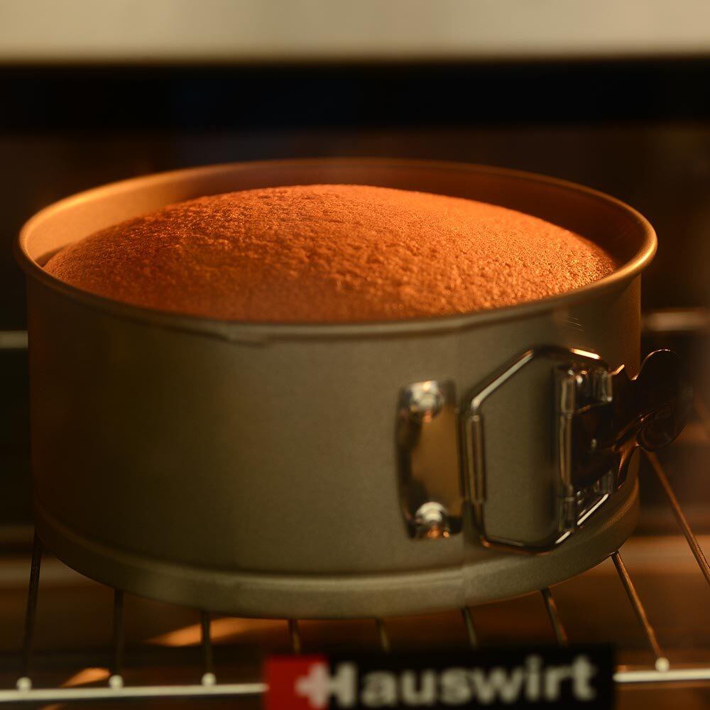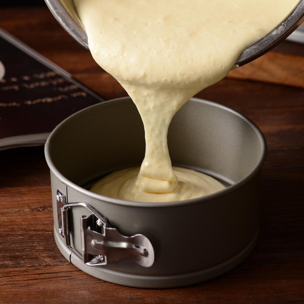 バネ式の止め具を緩めるとリングが外側に広がり、ケーキの取り出しが簡単です。