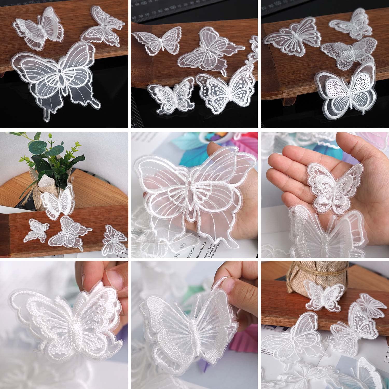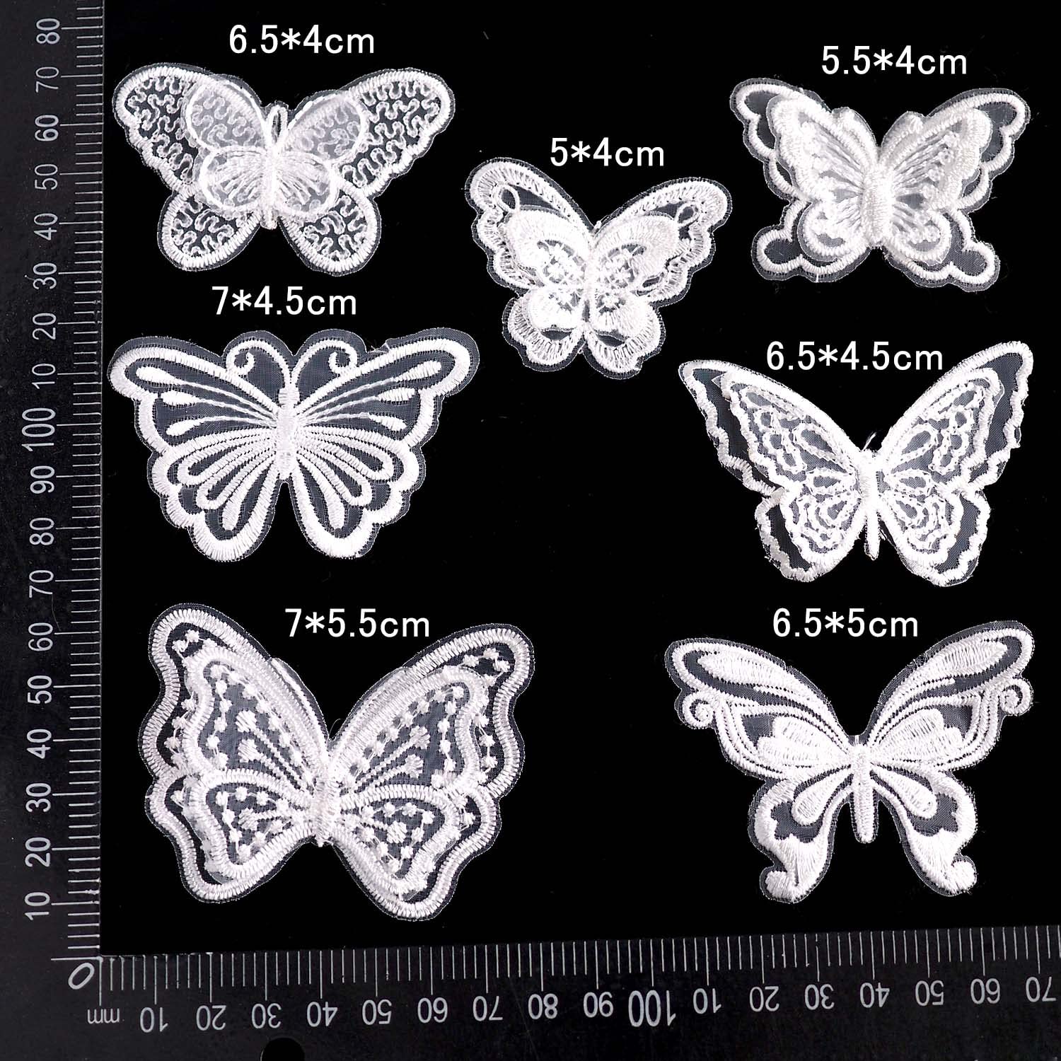 【新着】sempiterno 12個セットレース生地 刺繍花 花と蝶のパターン 縫製 DIY 服 工芸品の装飾 パッチ アップリケ モチーフ バッグ 靴 帽子 飾り アクセサリー(ホワイト12個セット/蝶) | GIGATERA