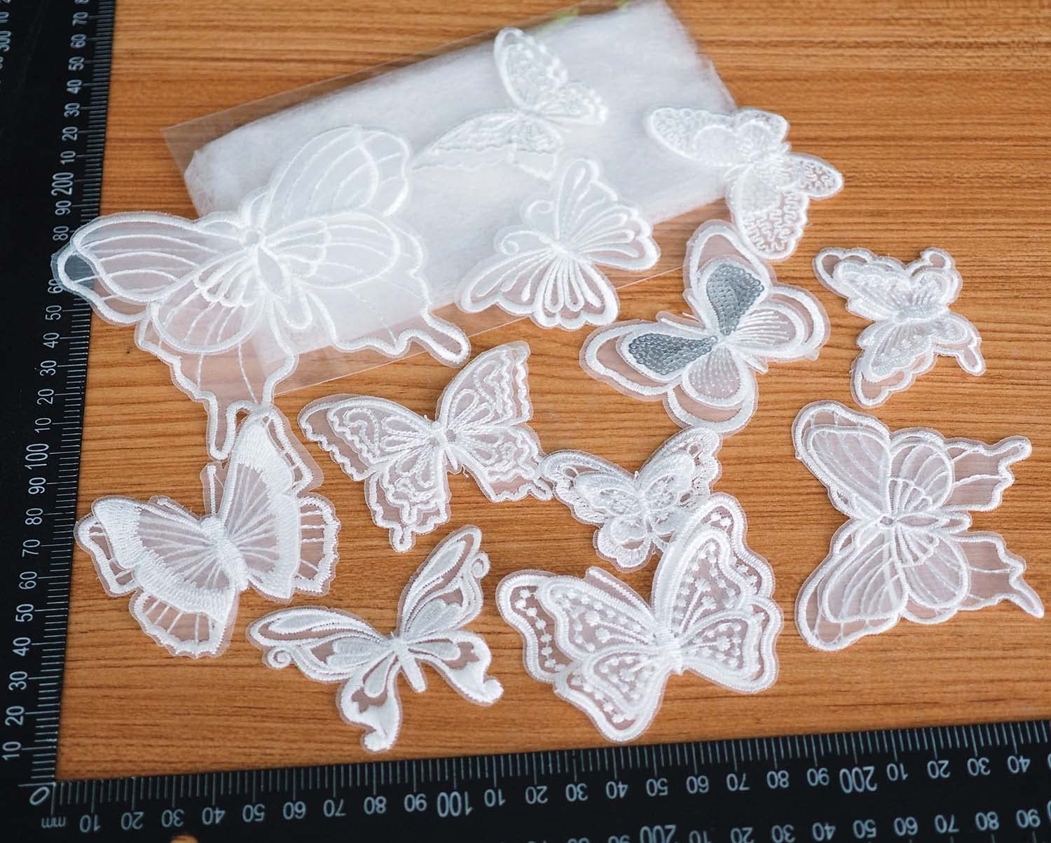 sempiterno 12個セットレース生地 刺繍花 花と蝶のパターン 縫製 DIY 服 工芸品の装飾 パッチ アップリケ モチーフ バッグ 靴 帽子 飾り アクセサリー(ホワイト12個セット/蝶)