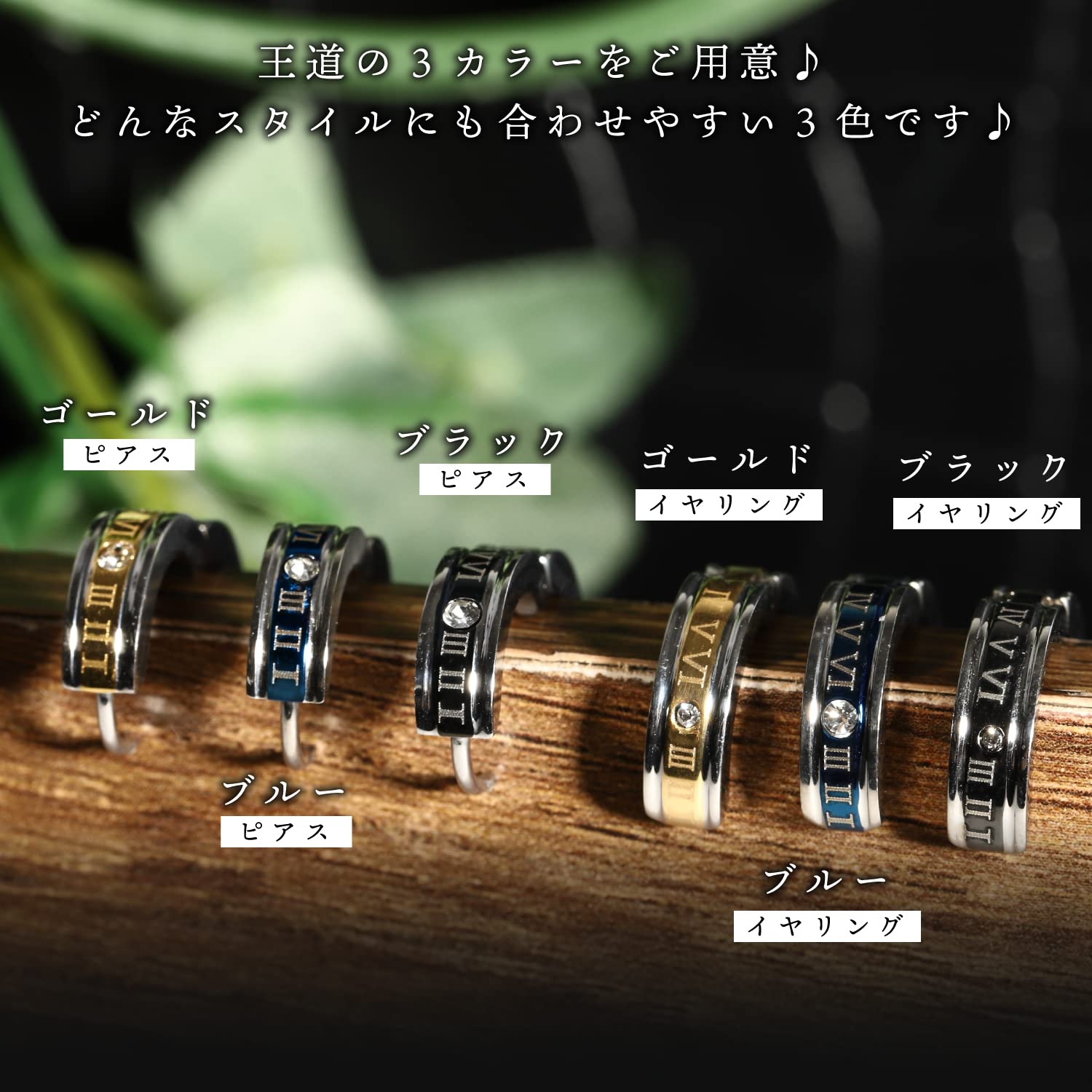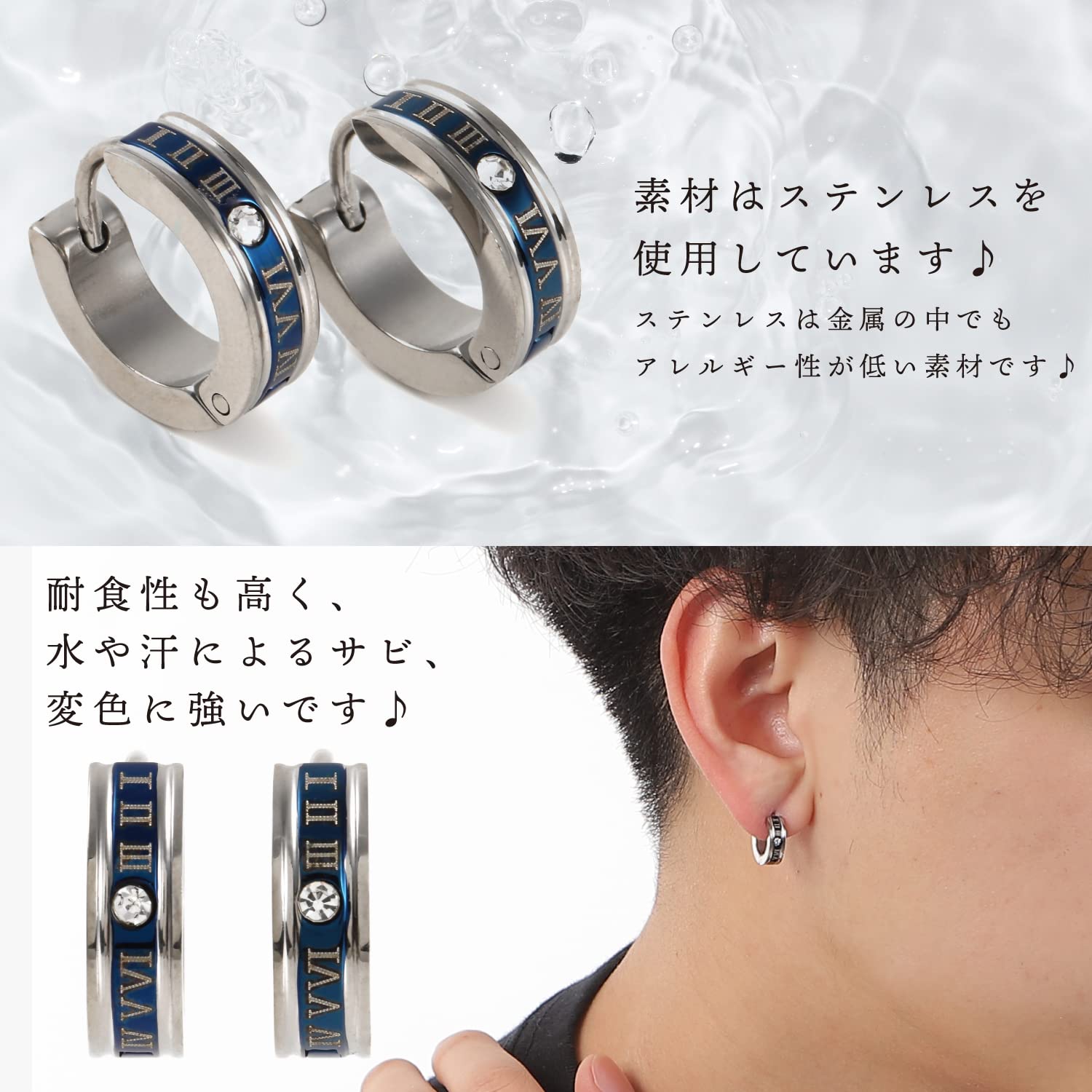【セール】[アロハモニ] ローマ数字 ステンレス イヤリング フープピアス イヤーカフ フェイクピアス 両耳 2個セット フープ リング ノンホールピアス キュービックジルコニア メンズ レディース ユニセックス | GIGATERA