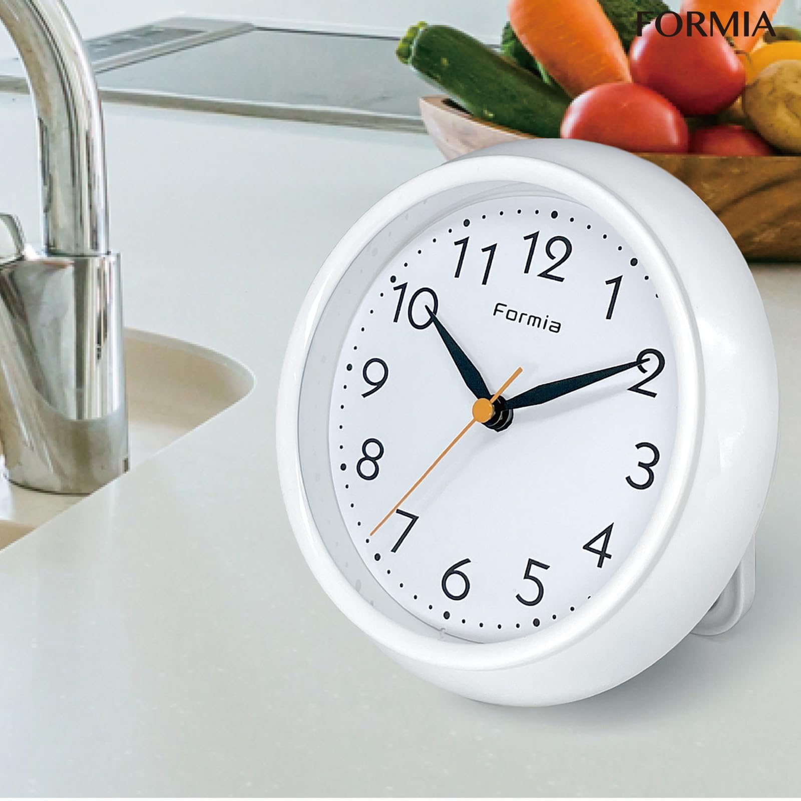 Formia(フォルミア) バスクロック 防水 大画面 お風呂用 キッチン用 壁掛け時計 置き掛け兼用 アナログ タオルハンガー 保土ヶ谷電子販売 ホワイト HWP-001S-WH