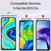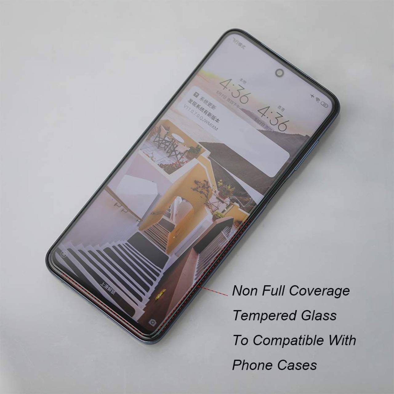 【スマホケースに合わせやすい】: Redmi Note 9Sの湾曲したエッジのデザインに合わせてフィルムを画面より少しだけ小さくした。スマホとフィルムの間に 少しだけスペースを残したことでほとんどのケースに適用できる。
