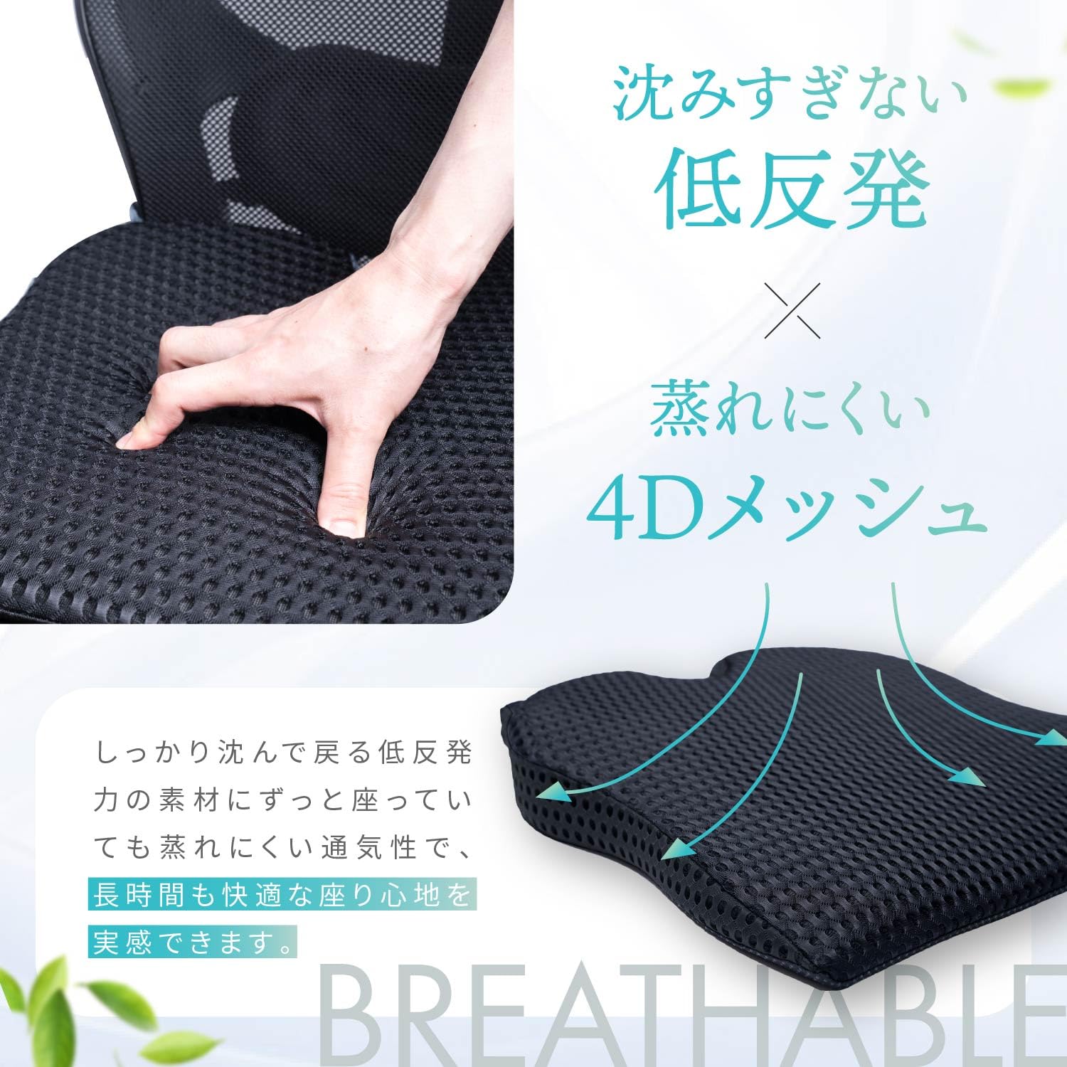 【Poco'ce掲載】 LeLante 車 クッション シートクッション カーシートクッション カーシート 座布団 低反発 通気性 体圧分散 お尻が痛くならない (オールブラック(メッシュ))
