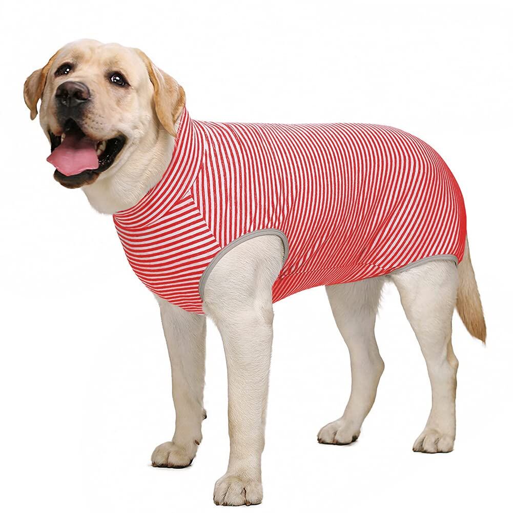 PET 術後服 犬服 犬術後服 術後ウェア 術後カバー服 保護服 介護服 避妊 離乳 傷口保護 皮膚病 大型犬 中型犬(レッドストライプ LL)
