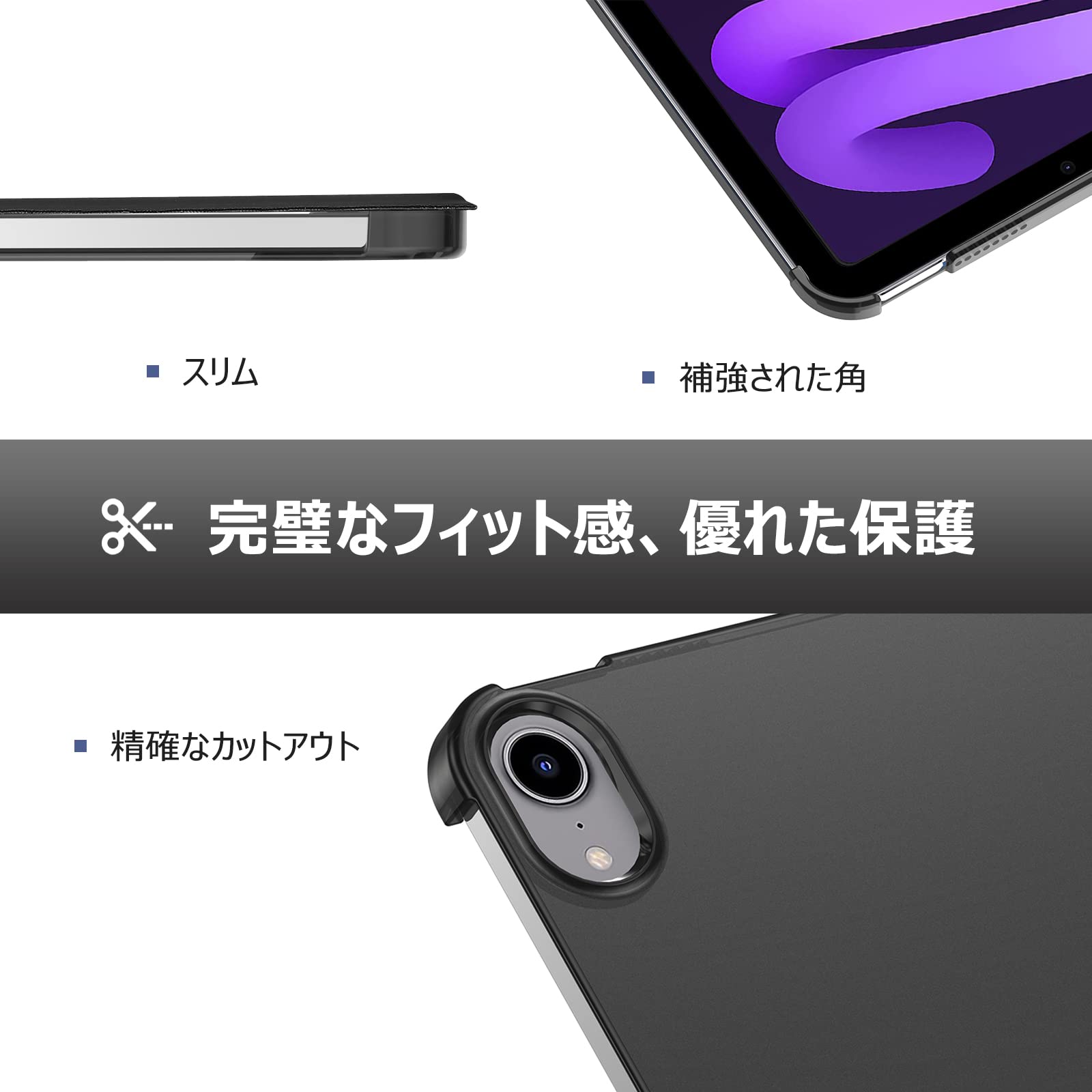 【新着】ProCase iPad Mini A17 Pro 第7世代 2024 Mini6 ケース 2021 8.3インチ、スリム 三つ折りスタンド ハードバックカバー、適用機種:iPad Mini A17 Pro 第7世代 2024、Mini 6世代 2021 -ブラック | GIGATERA