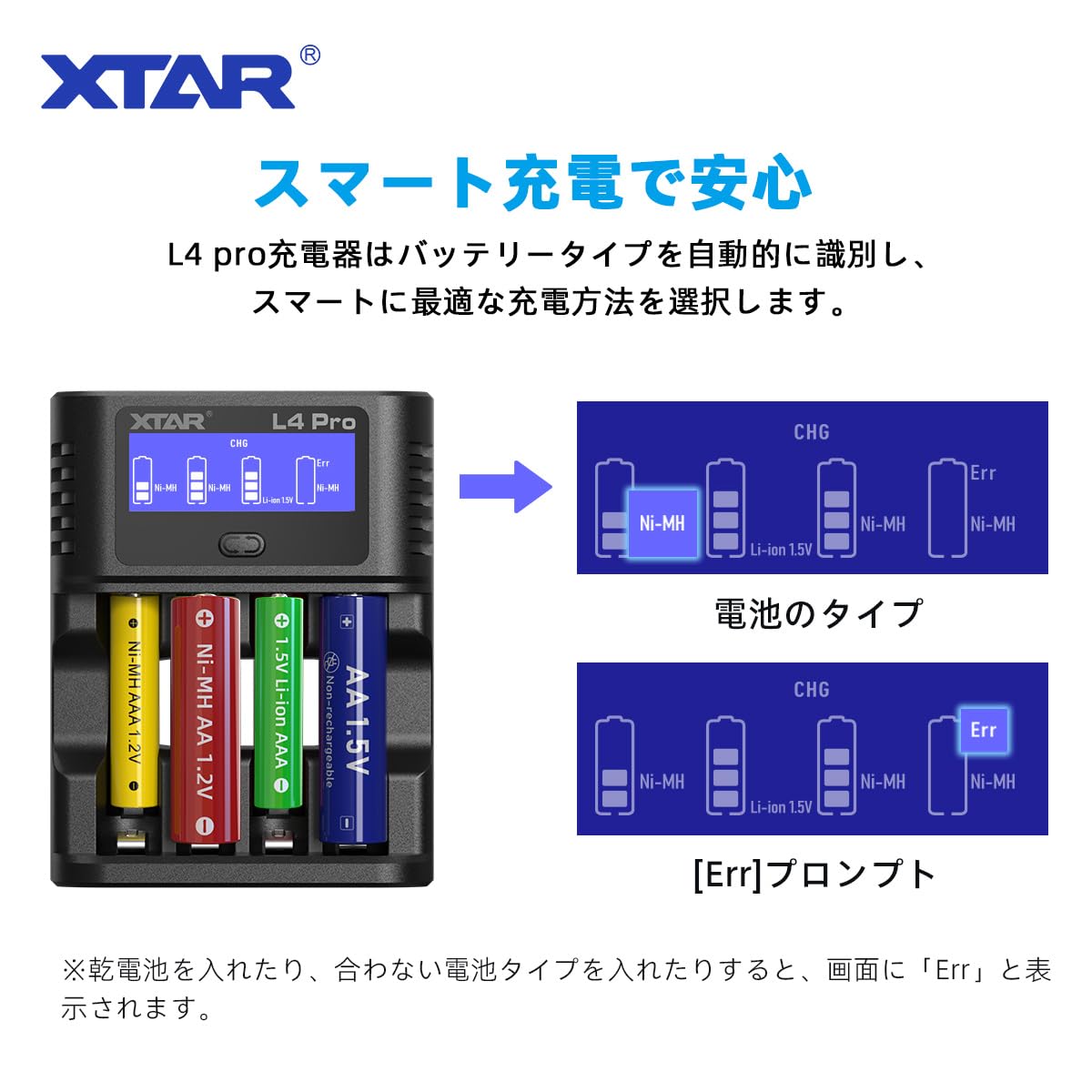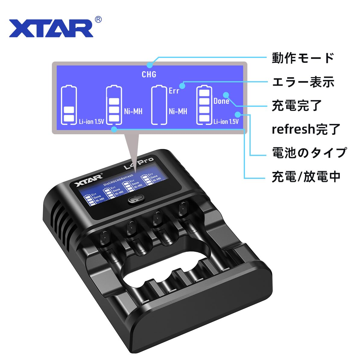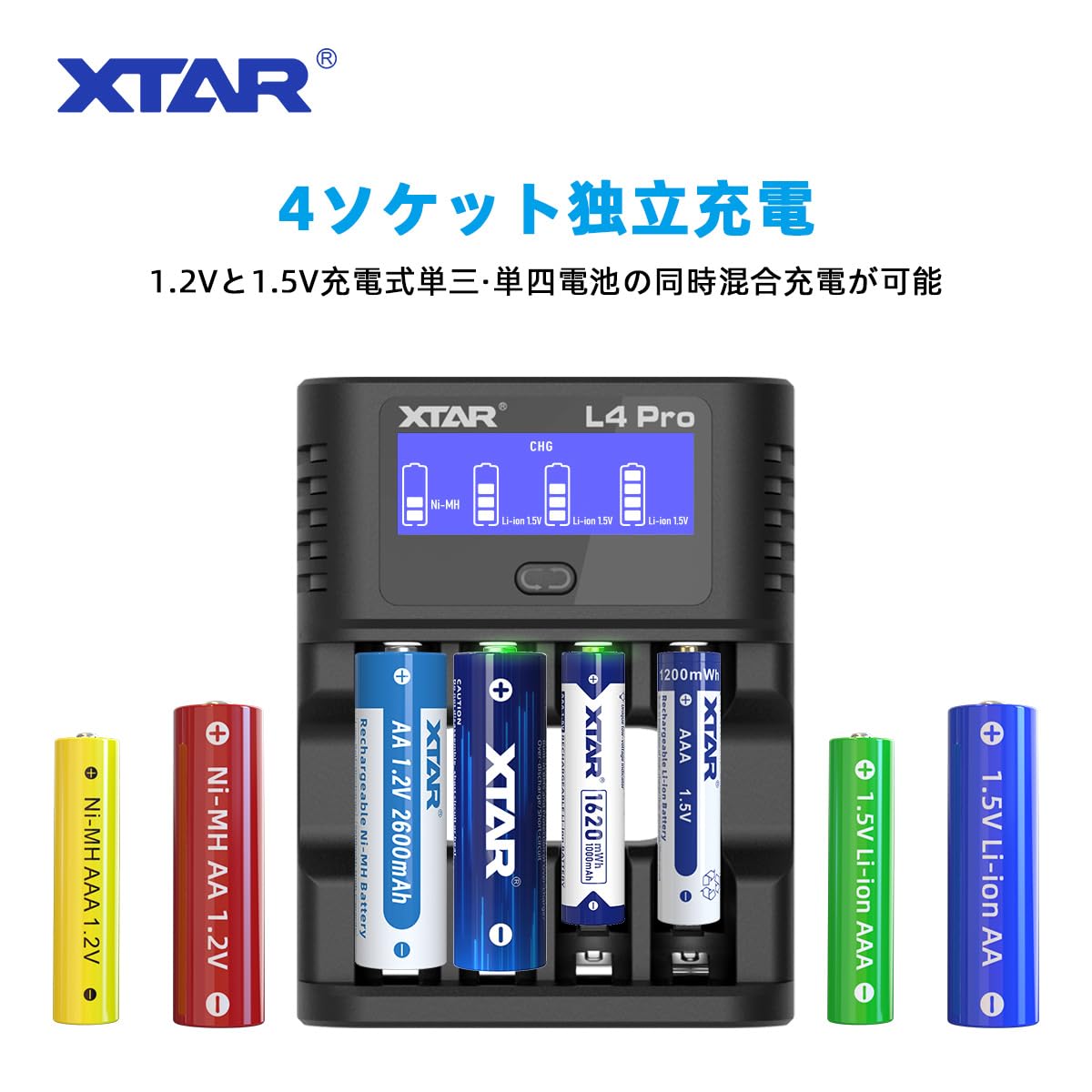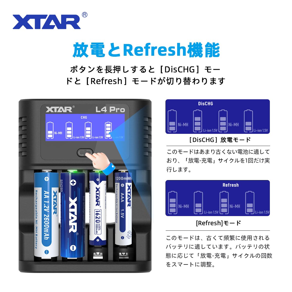 XTAR L4 Pro 充電器 1.5V 単3 単4 リチウム電池と1.2V AA/AAA ニッケル水素電池充電器【放電機能】【リフレッシュ機能】