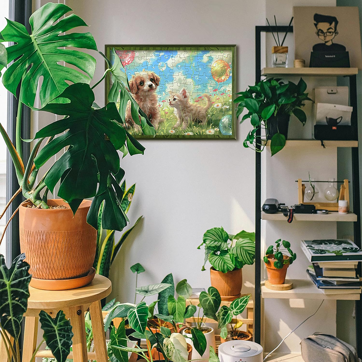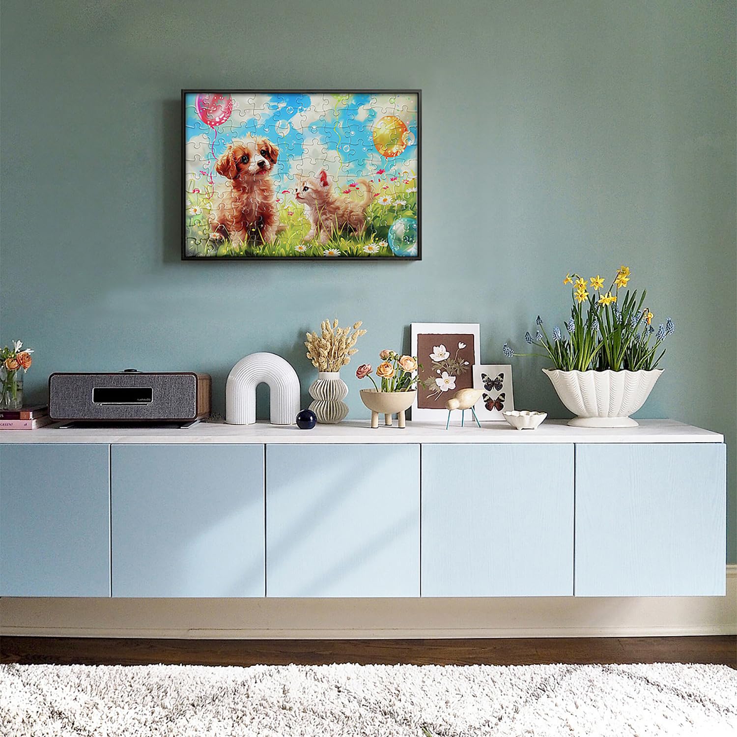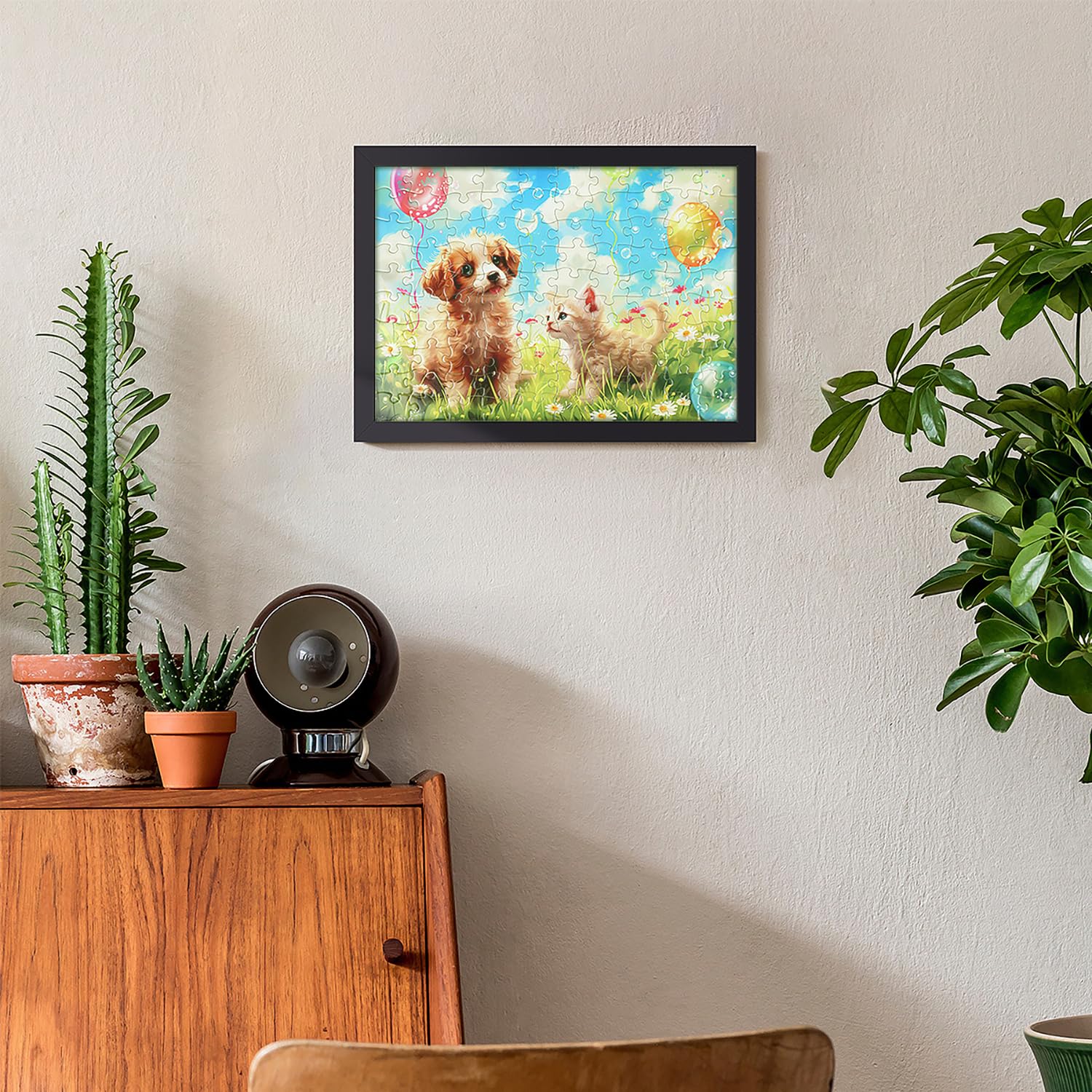 【数量限】MISITU ジグソーパズル 100ピース ラージピース パズル 風景 絵画 猫 犬 ペット 動物 かわいい プレゼント 贈り物 誕生日 記念日 祝い クリスマス おしゃれ インテリア 子猫と子犬 (28.8 x 41 cm) | GIGATERA