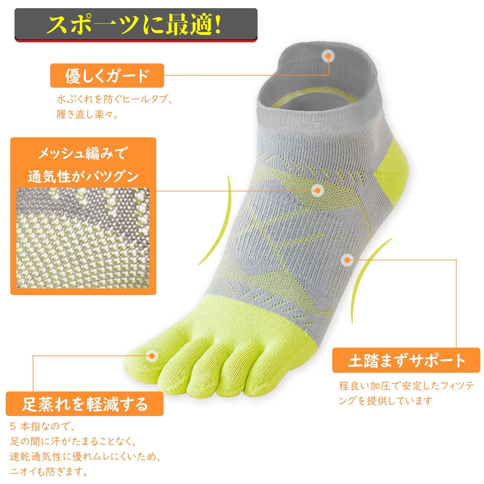 [ETARLOS] 五本指ソックス レディース 5本指靴下 スポーツ ランニング くるぶし くつした 夏 綿 破れにくい 消臭 蒸れない 通気 吸汗 四季適用 5足セット 22-25cm