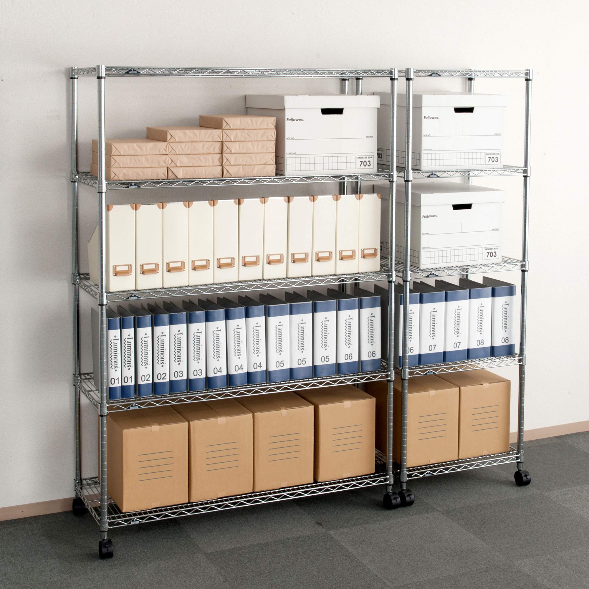 【数量限】ドウシシャ ルミナス レギュラー ラック スチールラック 収納棚 幅60 4段 隙間収納 防錆加工 業務用 耐荷重250kg (棚板1枚あたり) キャスター付き 豊富なカスタムパーツ ポール径25mm 幅61×奥行46×高さ179.5cm NLH6018-5 | GIGATERA
