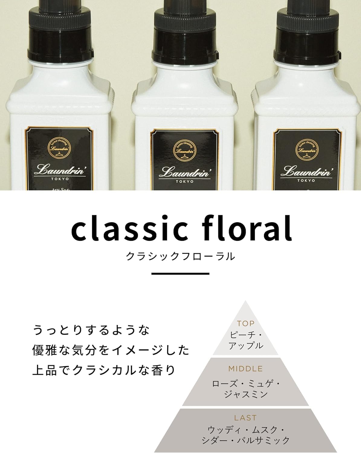 クラシックフローラルの香りが、洗濯後の衣類にふんわりと残り、まるで花畑を散歩しているかのような気分を運んでくれる柔軟剤です。