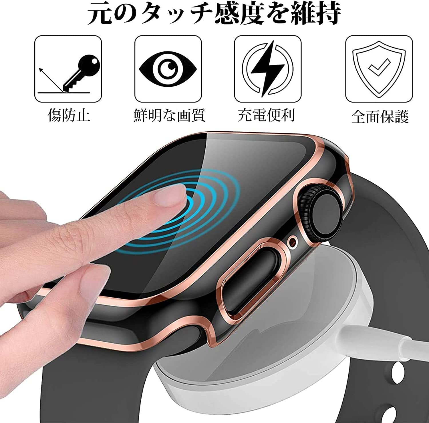 【薄型&軽量タイプ】アップルウィッチに合わせて精密設計されて、違和感なく本体にぴったり、高透明な画面でタッチ感抜群、apple watchの美しさを損なわない。