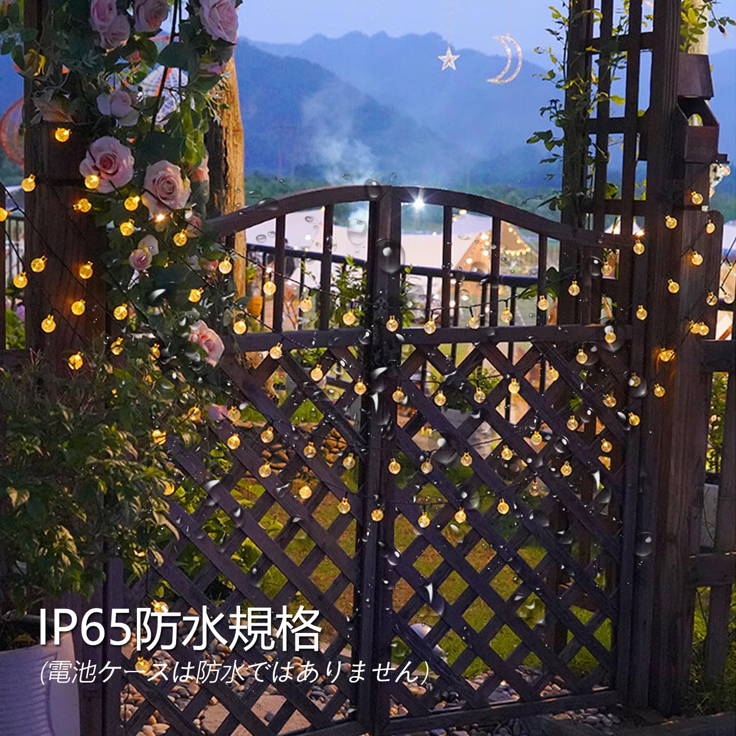 【生活防水&防塵仕様】ストリングスライトはIP65の防水防塵仕様で、屋内での飾りはもちろん、屋外でも雨や雪の日にも安心でご利用いただけるようになります。ご注意:電池ボックスは防水ですが、電池は防水ではないため、水に入れないでください。
