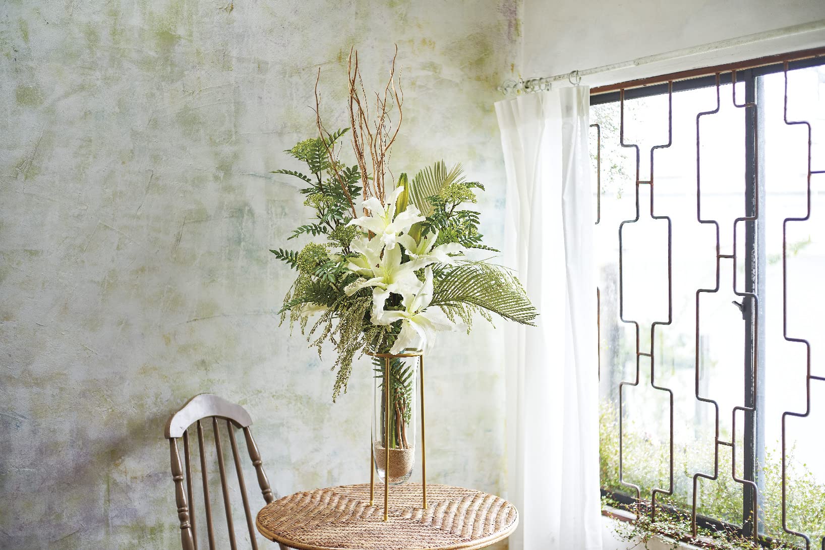 アーティフィシャルフラワー(造花)なので陽の届かない場所でも気軽にお楽しみいただけます。