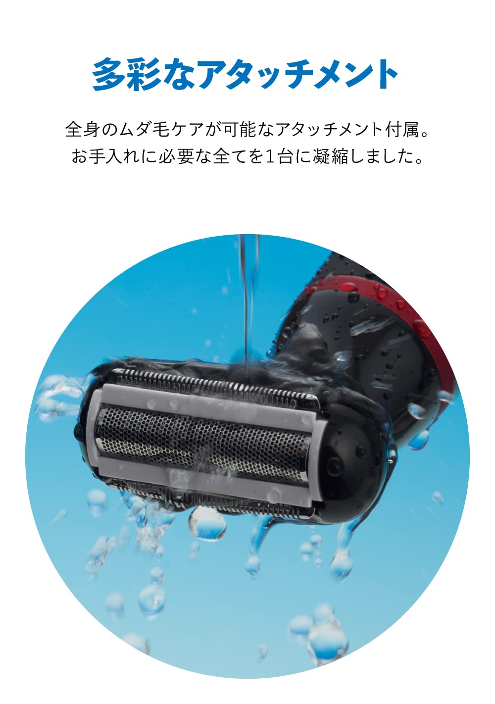 【水洗いで毎日清潔】防水構造なので、使用後は簡単お手入れ、本体まるごと水で洗い流せるので気になるニオイの原因となる皮脂や毛クズをすっきり洗い流して毎日清潔に使用することができます。(※激しい流水で洗ったり、水につけることはおやめください。※充電しながら浴室で使用しないでください。)
