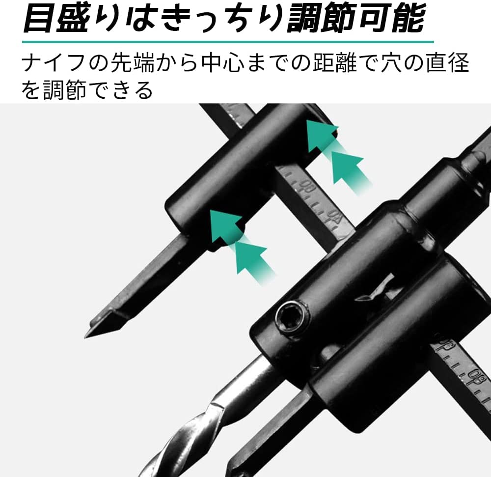【使用方法】電動ドライバーに取り付けて使用します。目盛りに沿って切断したい円のサイズにカッターを合わせて、 付属の六角レンチでカッターを固定して使用します。センタードリル2種類付きで厚板、薄板どちらでも使用可能です。ご注意:このストアは一括購入をサポートしています。 一括購入については、カスタマーサービスまでにをお問い合わせください。お問い合わせいただければ、満足のいく回答が得られるように返信いたします。