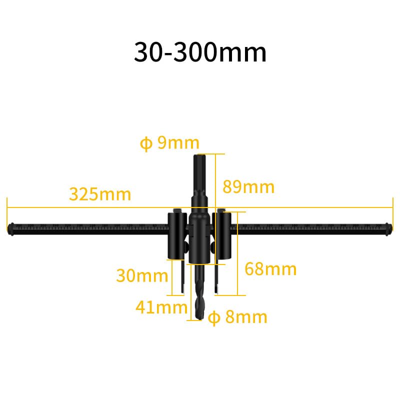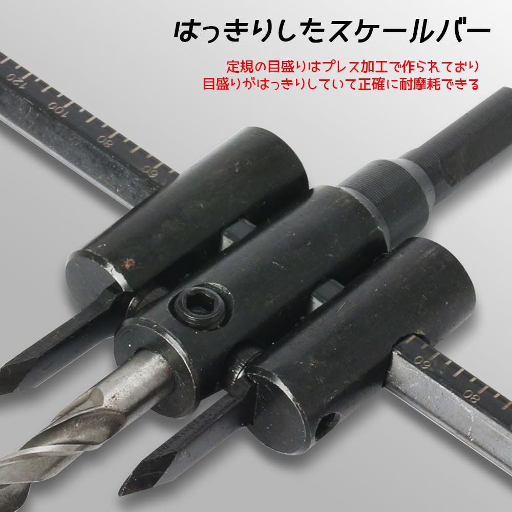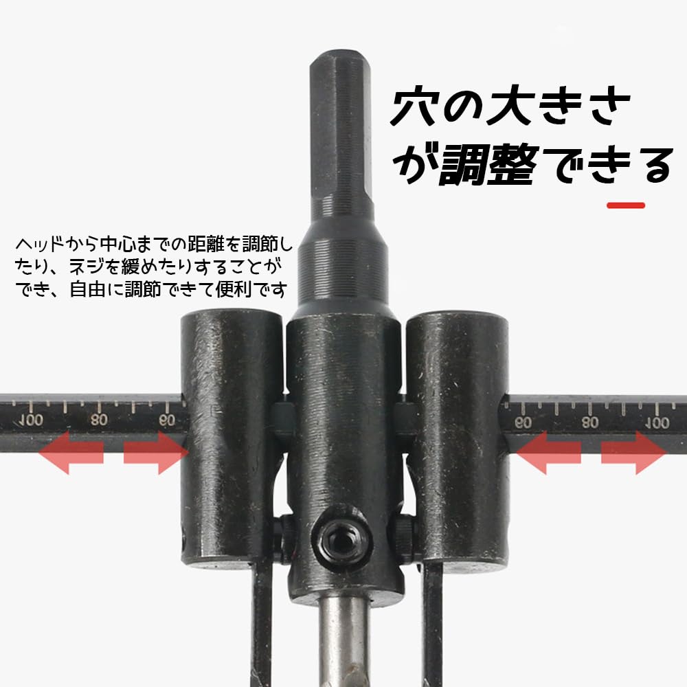 【穴あけ可能サイズ】:直径:30〜300mm(有効サイズ)まで可変、 軸径10mm、厚さ約50mmまでカットが可能です。穴あけ可能深さ:片側/25mm・両側/50mm。正確にサイズ調整可能:ミリ単位で調節可能。好きなサイズの円の穴あけ可能。