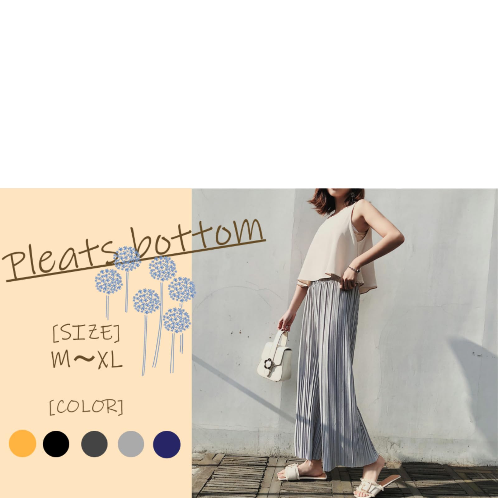 ウエストゴムなのでお腹周りも楽ちん!!プリーツ加工がシルエットを拾わないので、美脚ラインの強い味方です。生地自体にストンとした落ち感があり、大人のこなれ感がしっかり出せます。
