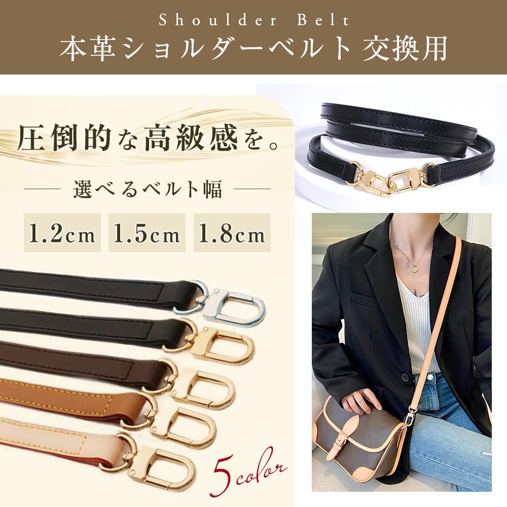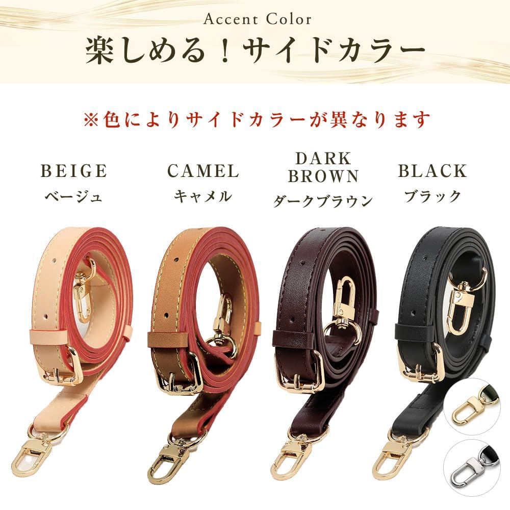 ?【選べるカラー】カラー:ベージュ・キャメル・ダークブラウン・ブラック(金具はゴールドとシルバー) 自分のバッグやスタイルにピッタリの1本をカスタマイズ。この本革ショルダーベルトは、実用性だけでなく、バッグの印象を引き立てる洗練されたデザインを備えた一品。普段使いからビジネスシーン、旅行まで、幅広いシーンで活躍します。