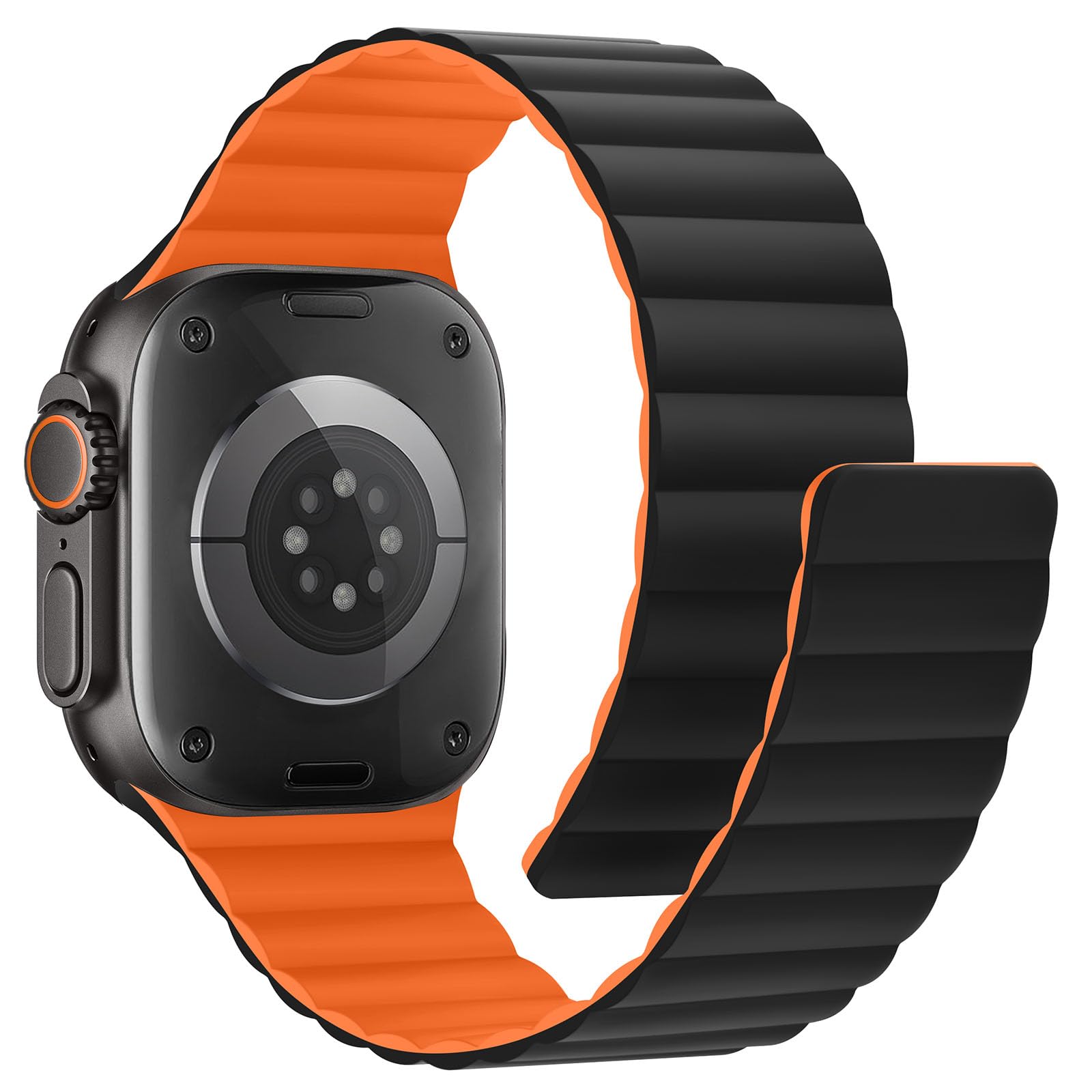 HITZEE マグネットBand コンパチブル Apple Watch バンド 49mm 46mm 45mm 44mm 42mm 41mm 40mm 38mm ソフトシリコン磁気 スポーツバンド iWatch Ultra 3/2/1 SE3/2/1 シリーズ 11 10 9 8 7 SE 6 5 4-1に対応(42/44/45/46(シリーズ 11/10)/49mm,ブラック/オレンジ)