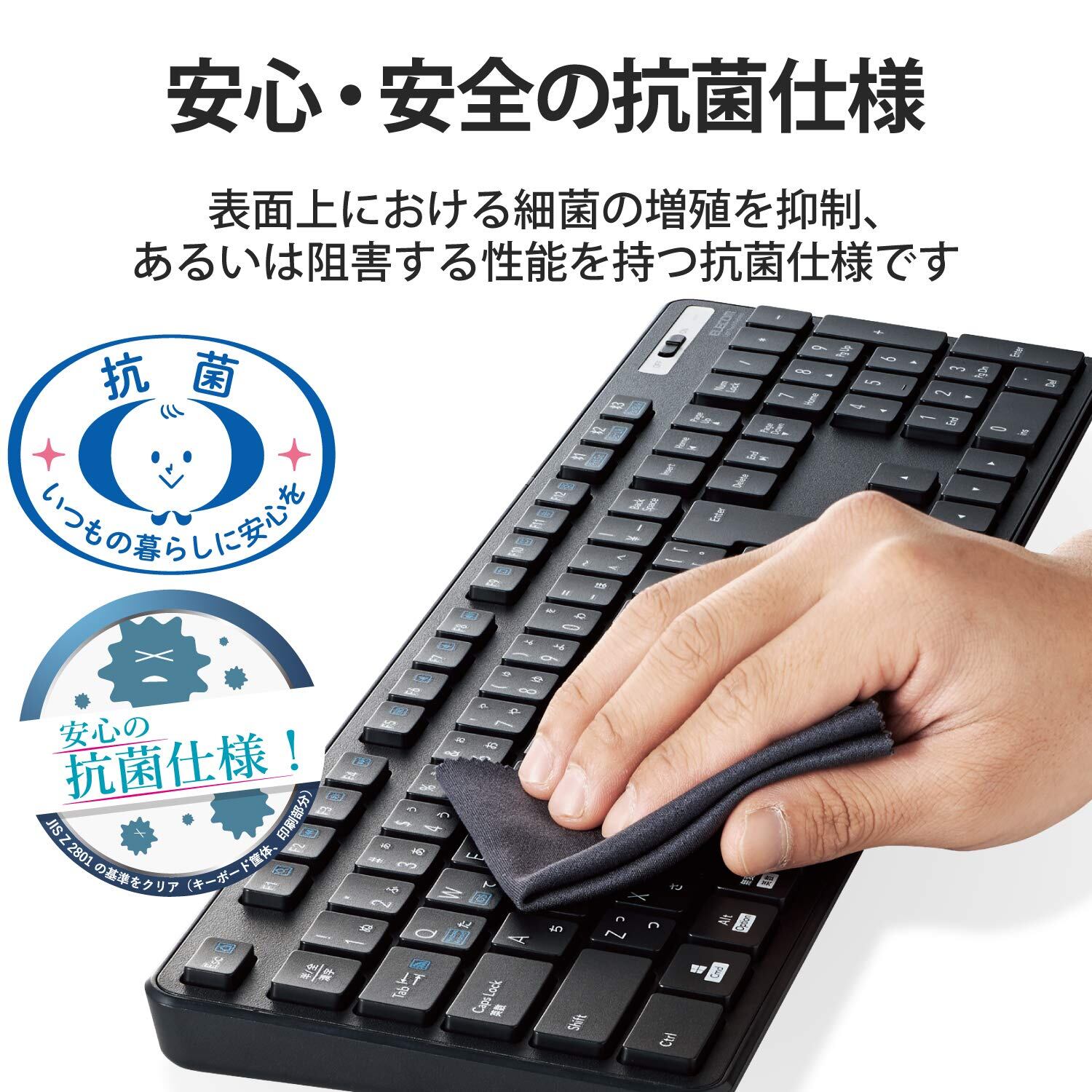 エレコム ワイヤレスキーボード Bluetooth フルキーボード テンキー付 薄型 メンブレン 抗菌 最大3台マルチペアリング対応 iPad/Surface/テンキー付 ブラック TK-FBM120KBK/EC