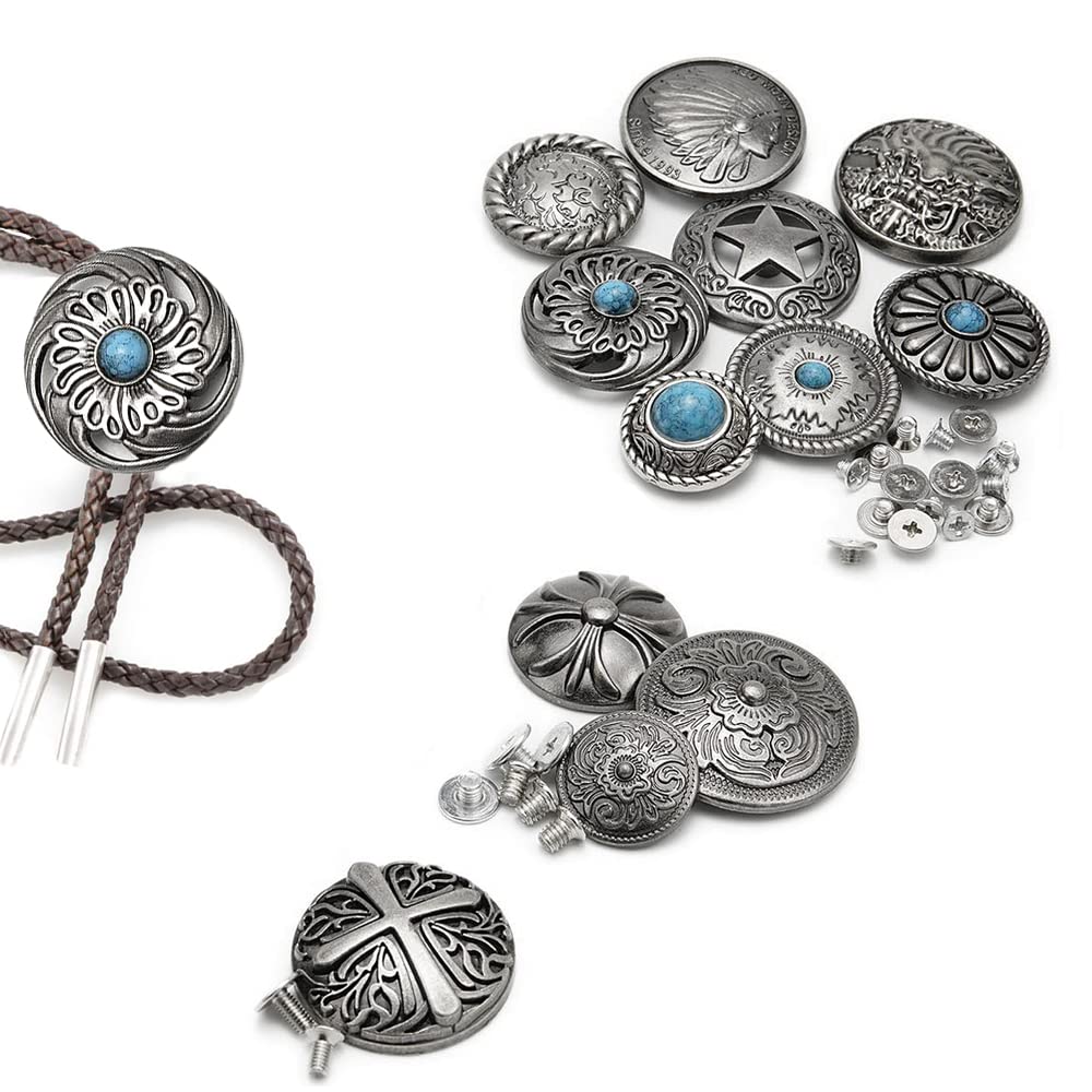 【人気】サムコス 12個セット コンチョ ボタン 20mm〜32mm ねじ式 インディアン 十字架 ターコイズ 唐草 龍 五芒星 クラフト レザークラフト バッグ 財布 手芸 DIY 裁縫 飾りボタン 交換 取付簡単 | GIGATERA