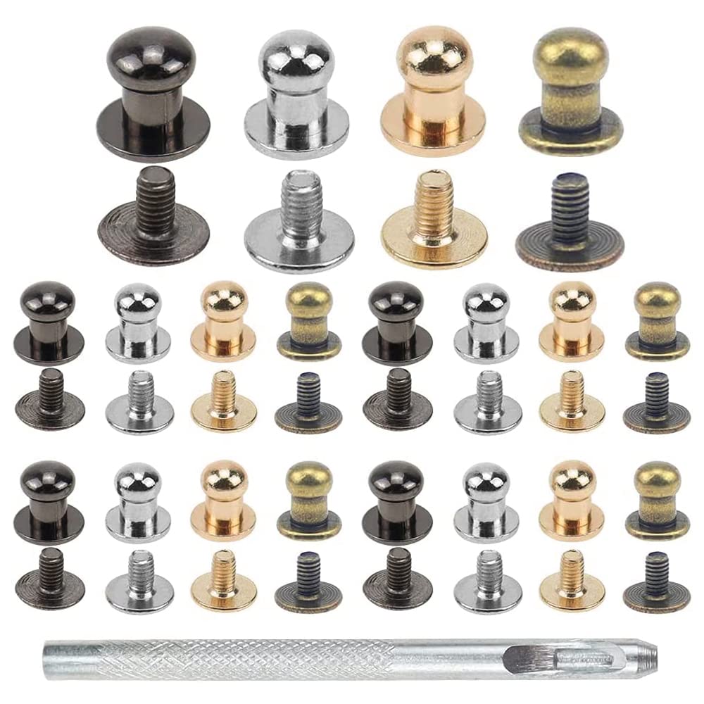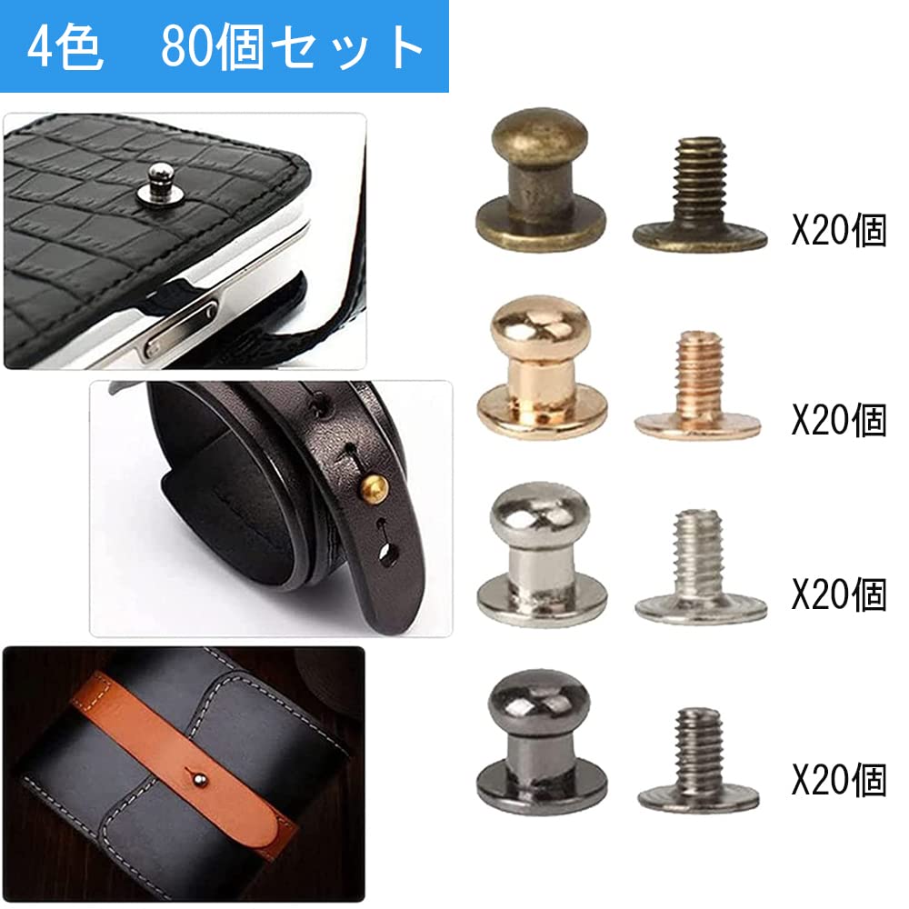 ギボシ ねじ式 80個セット4色 金 銀 黒 古銅 レザークラフトリベットネジ式 レザー用 スタッド ジョイント金具 バックル 留め具 金具 手芸 パーツ