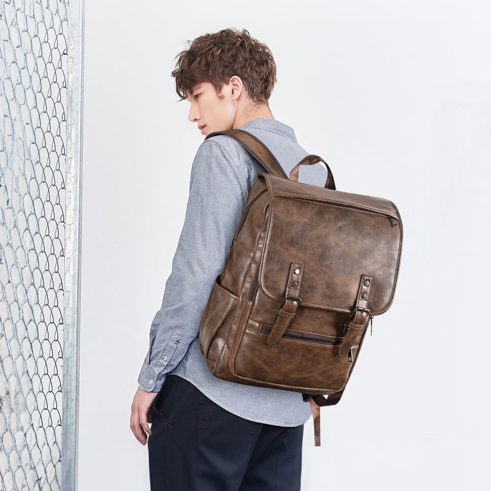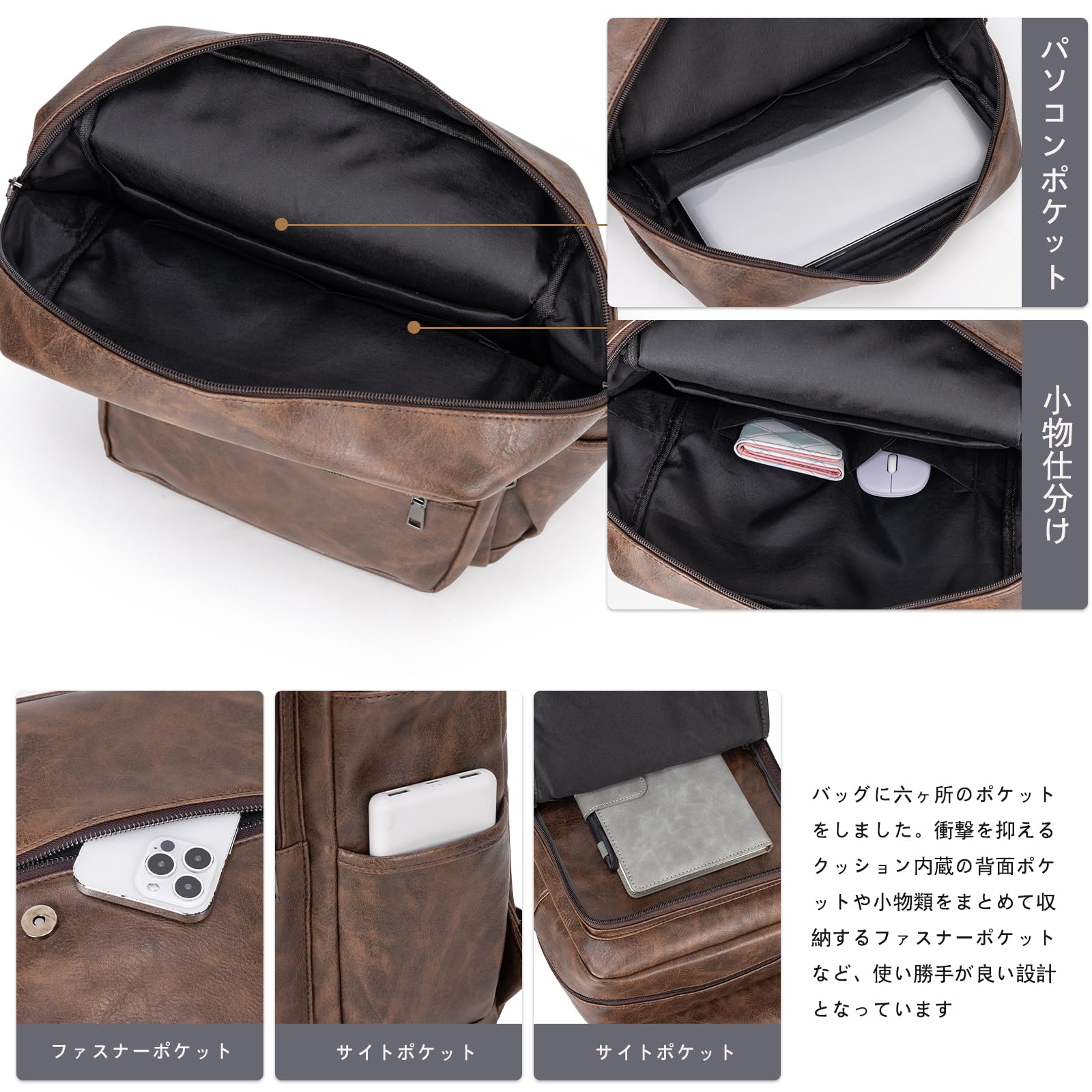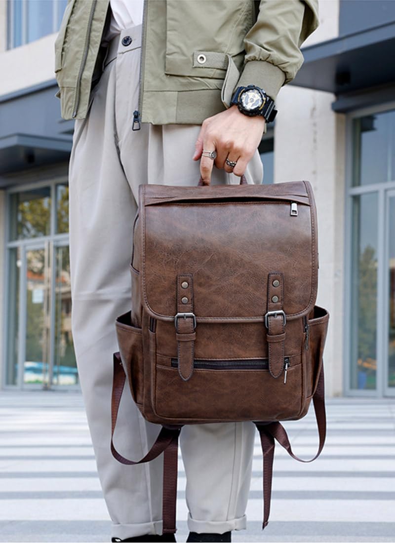 [Yukiyumi] 大容量リュック メンズ レザー 仕切りある 撥水性 ビジネスリュック 15.6インチPC入れ バックパック ヴィンテージ 多機能 収納力 出張 通勤 通学 ?日一泊 旅行
