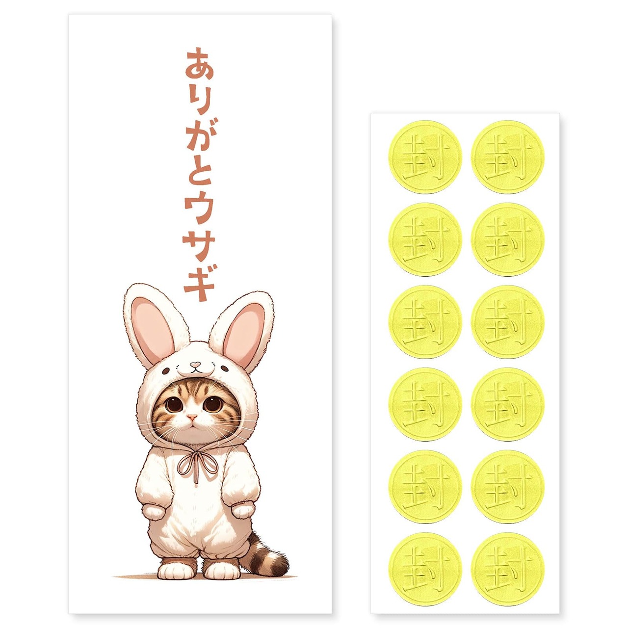 [おもしろポチ袋 製作所] ポチ袋 お年玉袋 12枚入 お札サイズ 感謝 ありがとう お礼 お小遣い袋 お小遣い帳 おこづかい 給料袋 封筒 お年玉 長札 可愛い おもしろ (01.ありがとウサギ 猫 AB037)