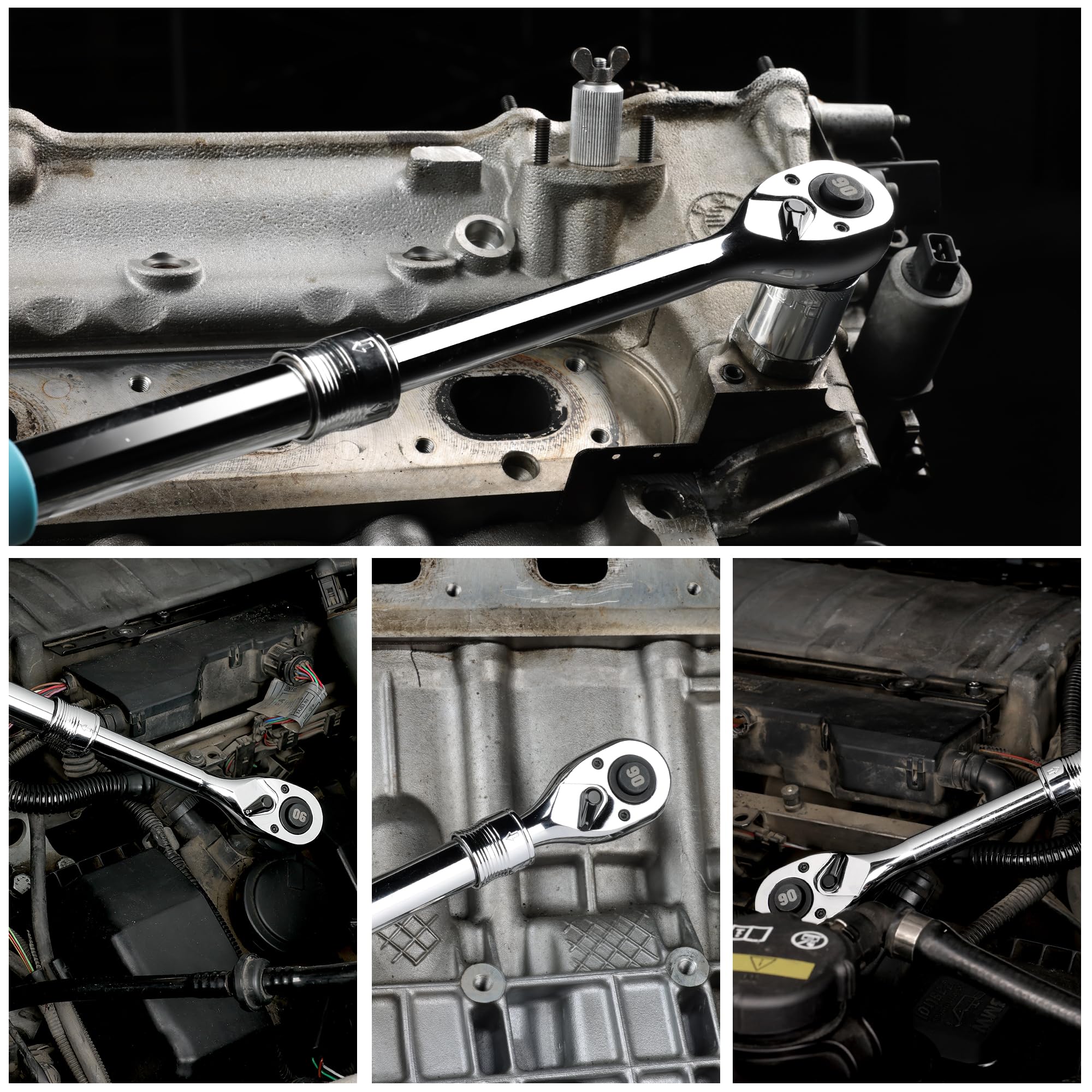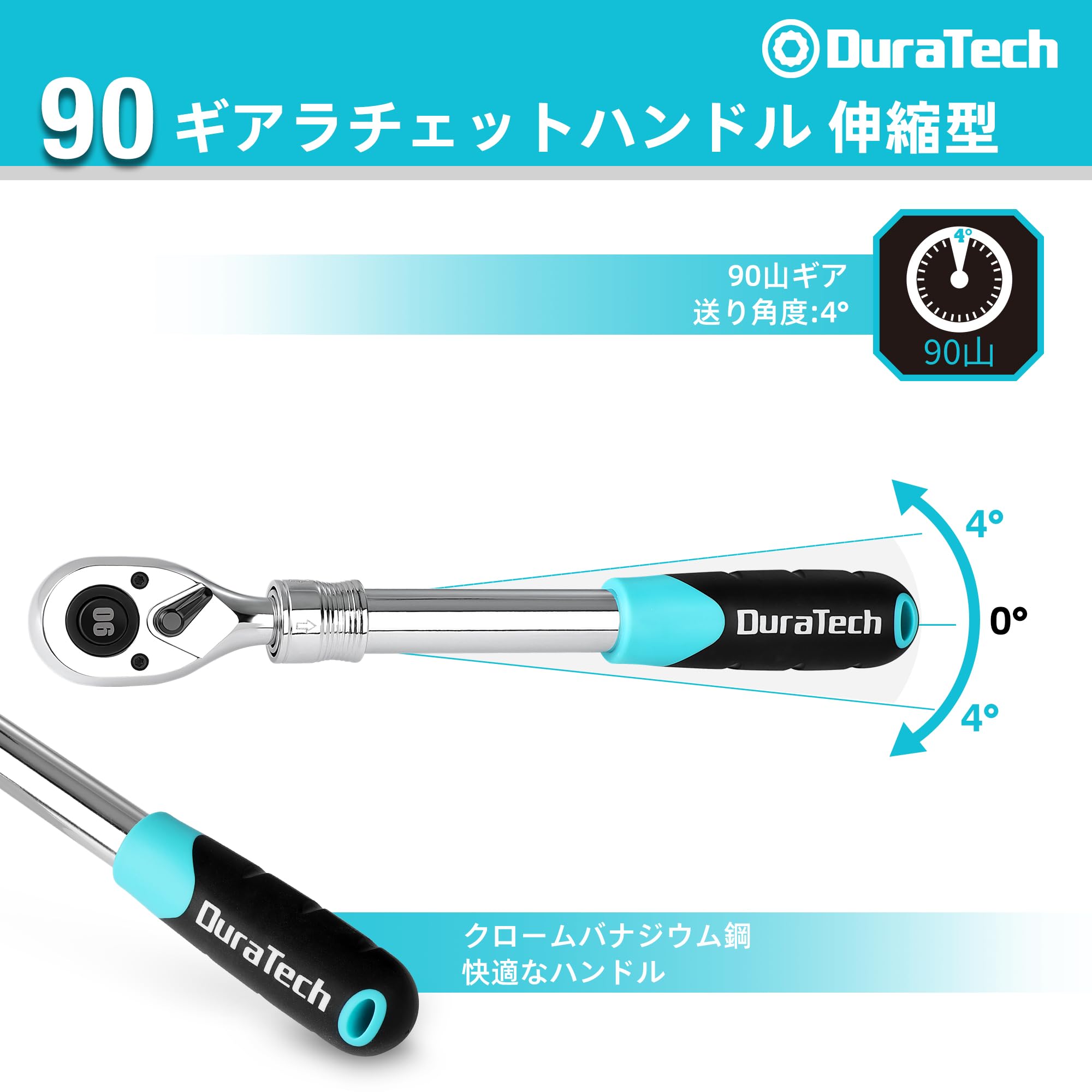 DuraTech ラチェットハンドル ラチェットレンチ ソケットレンチ 差込角12.7mm 伸縮式 調節範囲300-430mm 回転方向切替簡単 速脱ボタン 90山ギア