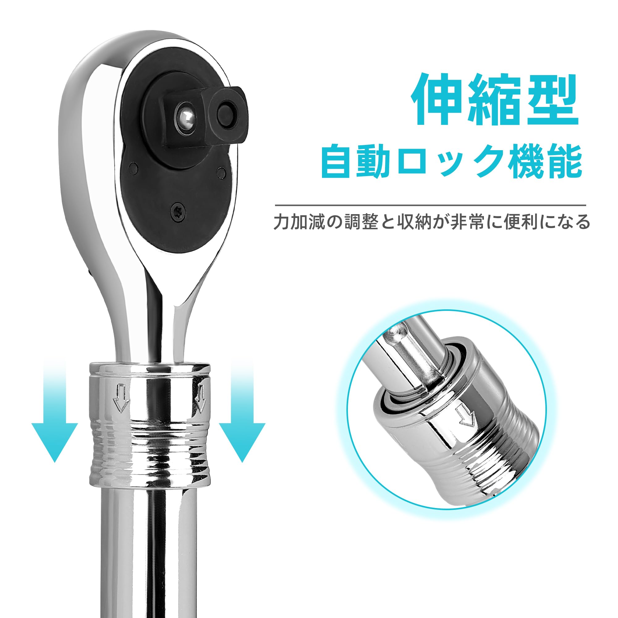 【材質】ラチェットハンドルは高品質なクロームバナジウム鋼を採用し、硬度と耐久性が優れ、錆びにくく長持ちします。