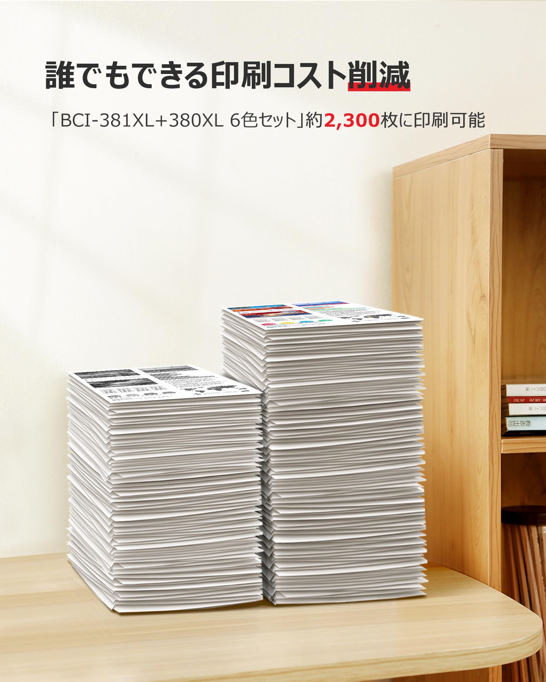★【パッケージ内容】BCI-380XLPGBK、BCI-381XLBK、BCI-381XLGY、BCI-381XLC、BCI-381XLM、BCI-381XLY 合計6本。また、安心の個別包装で、長期保存に適用し、製品破損あるいはインク漏れなどの不具合の状況も避けます。