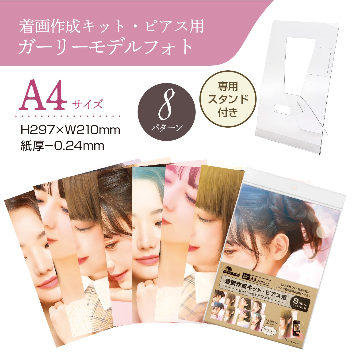 実際に着用しないので衛生面でも安心。8パターンあるので作品に合わせてモデルをチョイス。