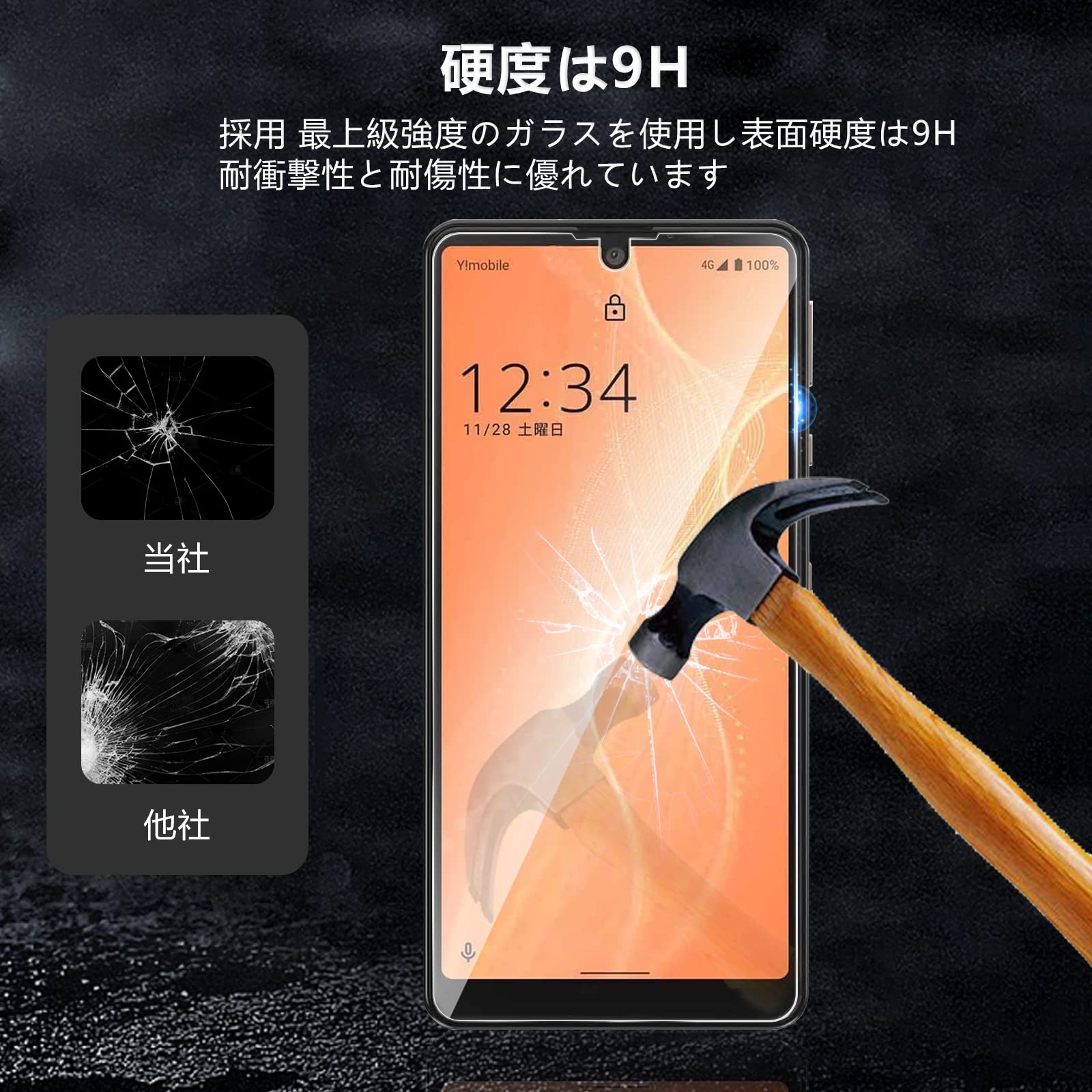 ★ 硬度9H :表面硬度指数は9Hで、傷がつきにくい強化ガラス。